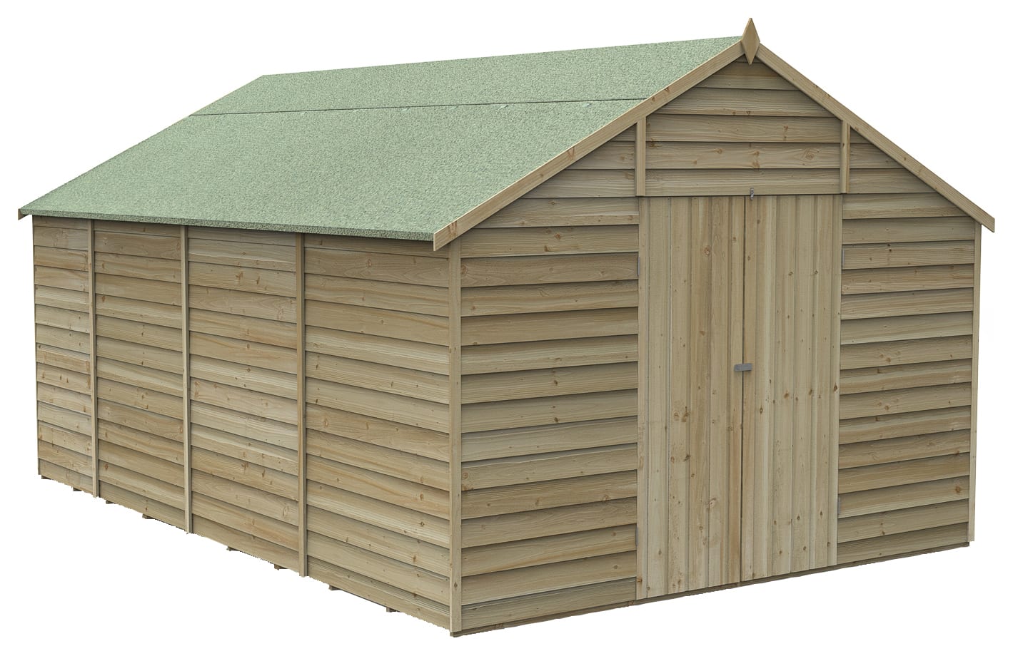 Forest Garden 10 x 15ft 4Life Apex Overlap Pressure Treated Double Door Windowless Shed