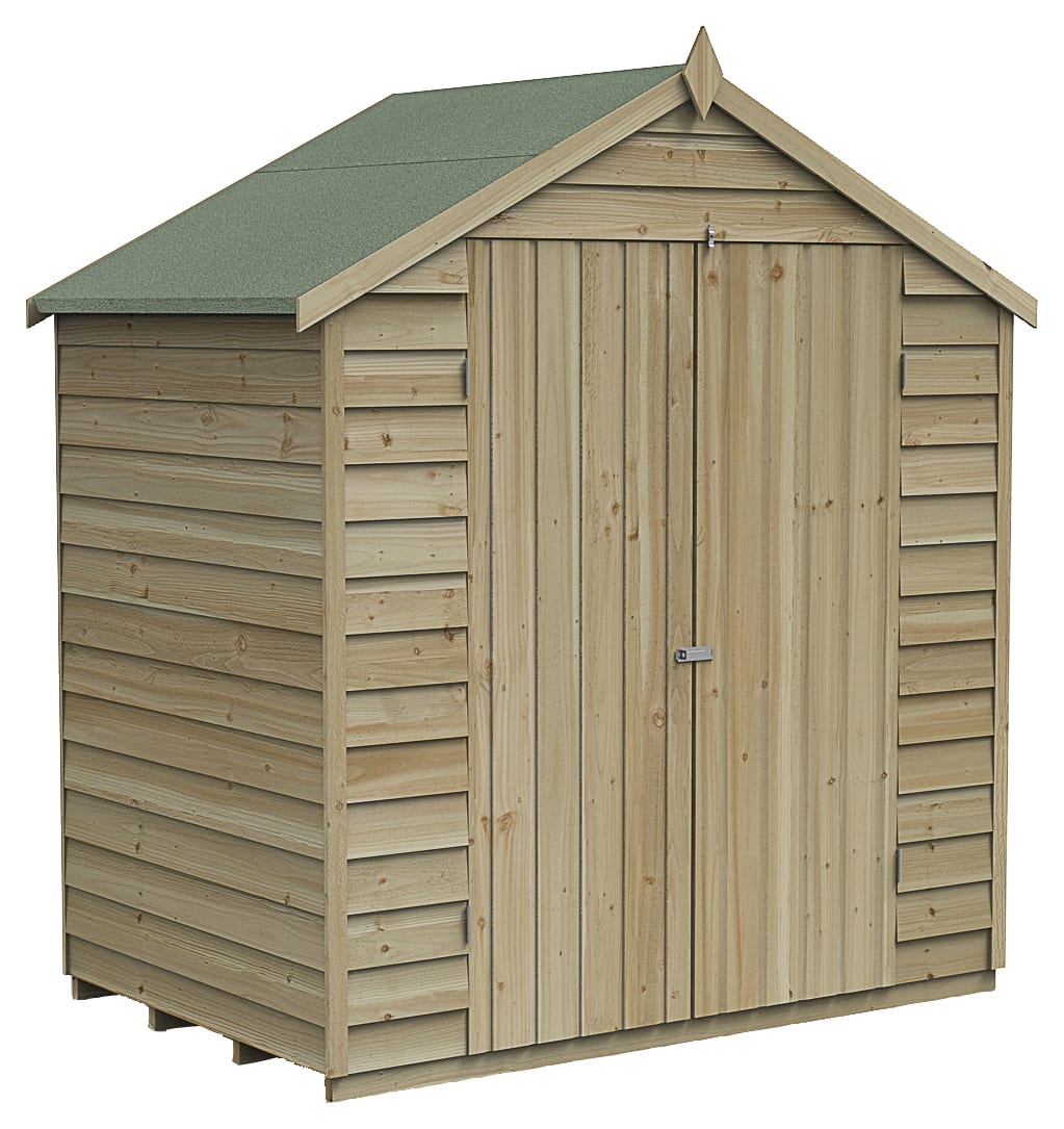 Forest Garden 6 x 4ft 4Life Apex Overlap Pressure Treated Double Door Windowless Shed with Base and Assembly