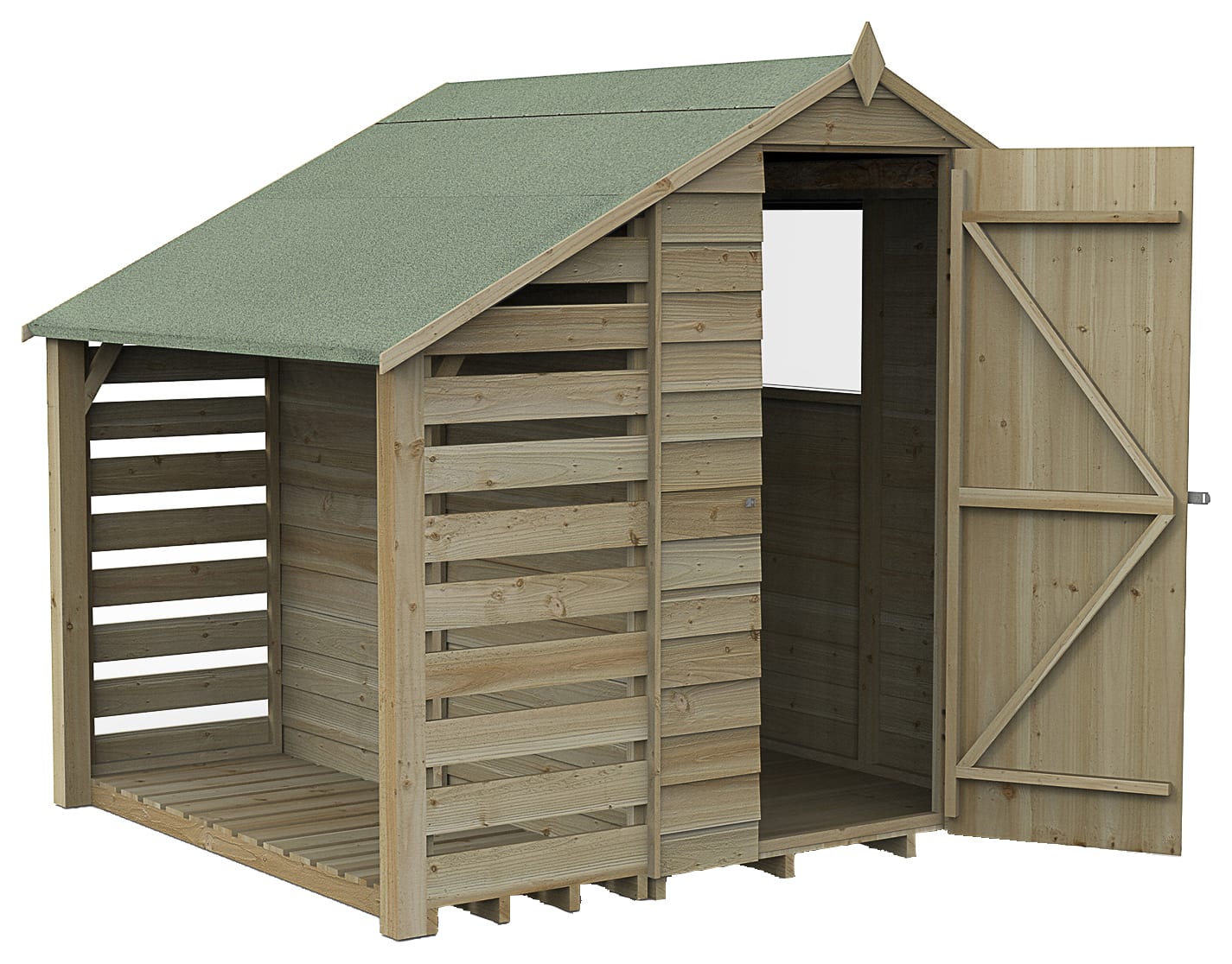 Forest Garden 6 x 4ft 4Life Apex Overlap Pressure Treated Windowless Shed with Lean-To and Assembly