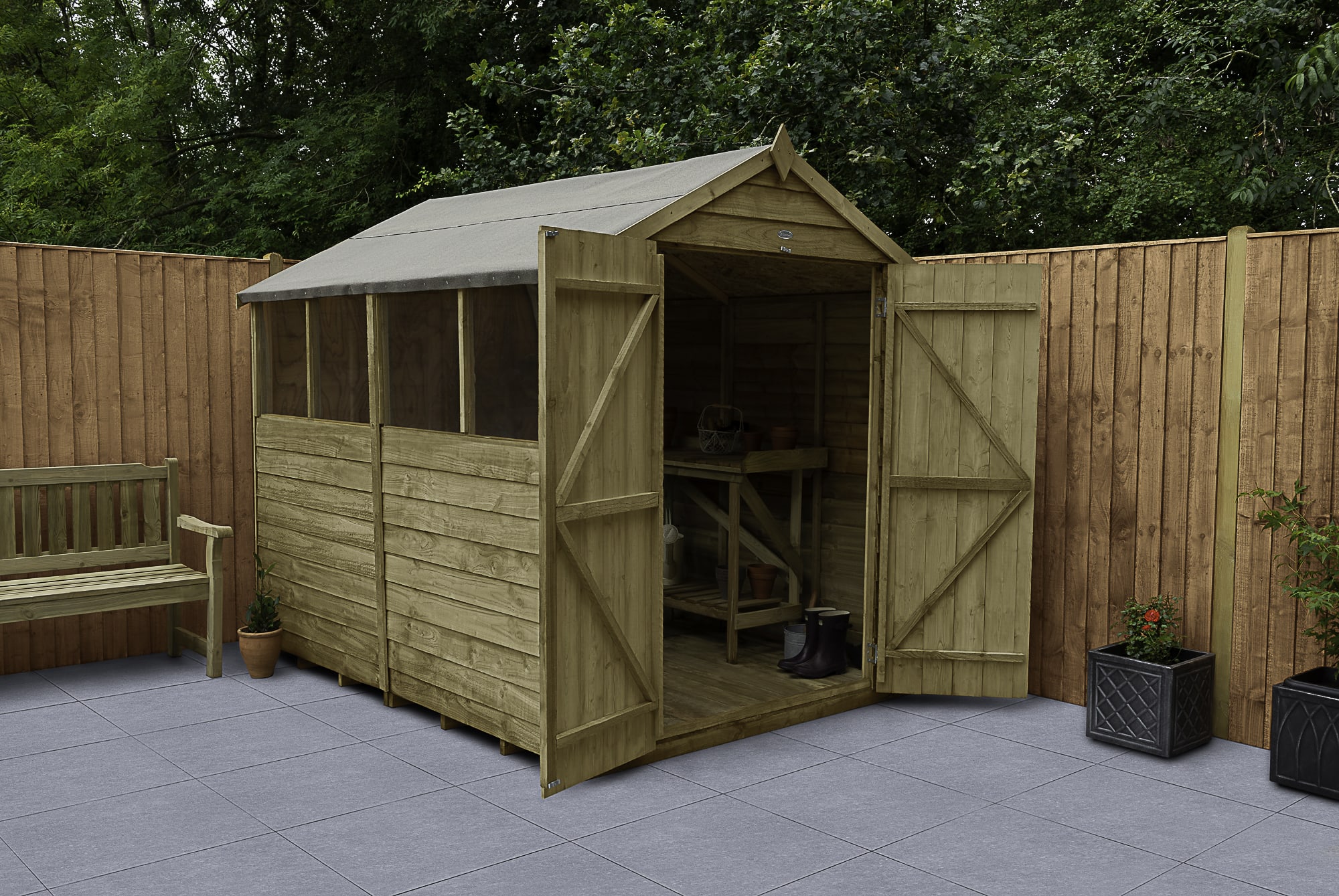 Forest Garden 8 x 6 ft Apex Overlap Pressure Treated Double Door Shed