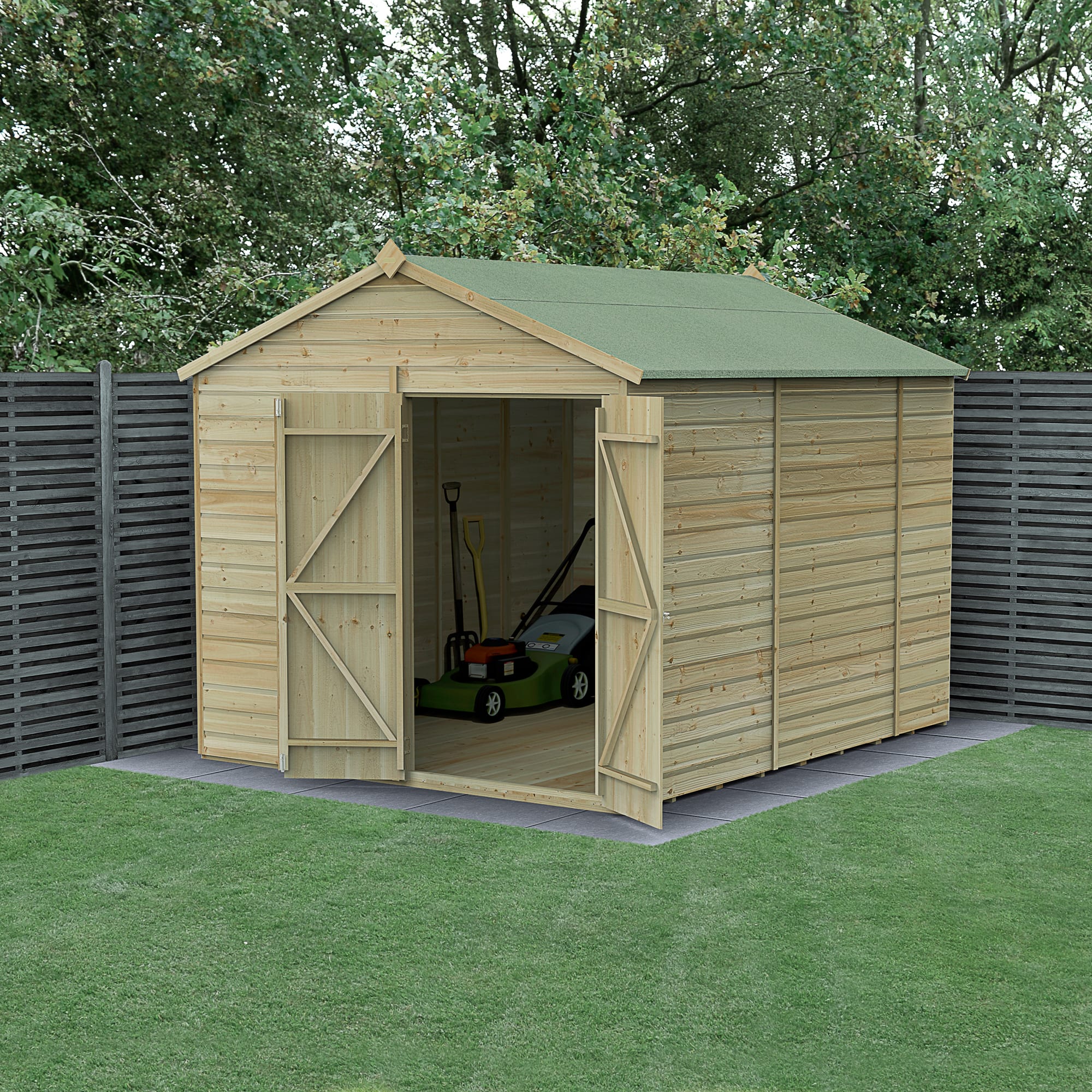 Forest Garden Beckwood 8 x 10ft Apex Shiplap Pressure Treated Double Door Windowless Shed with Base