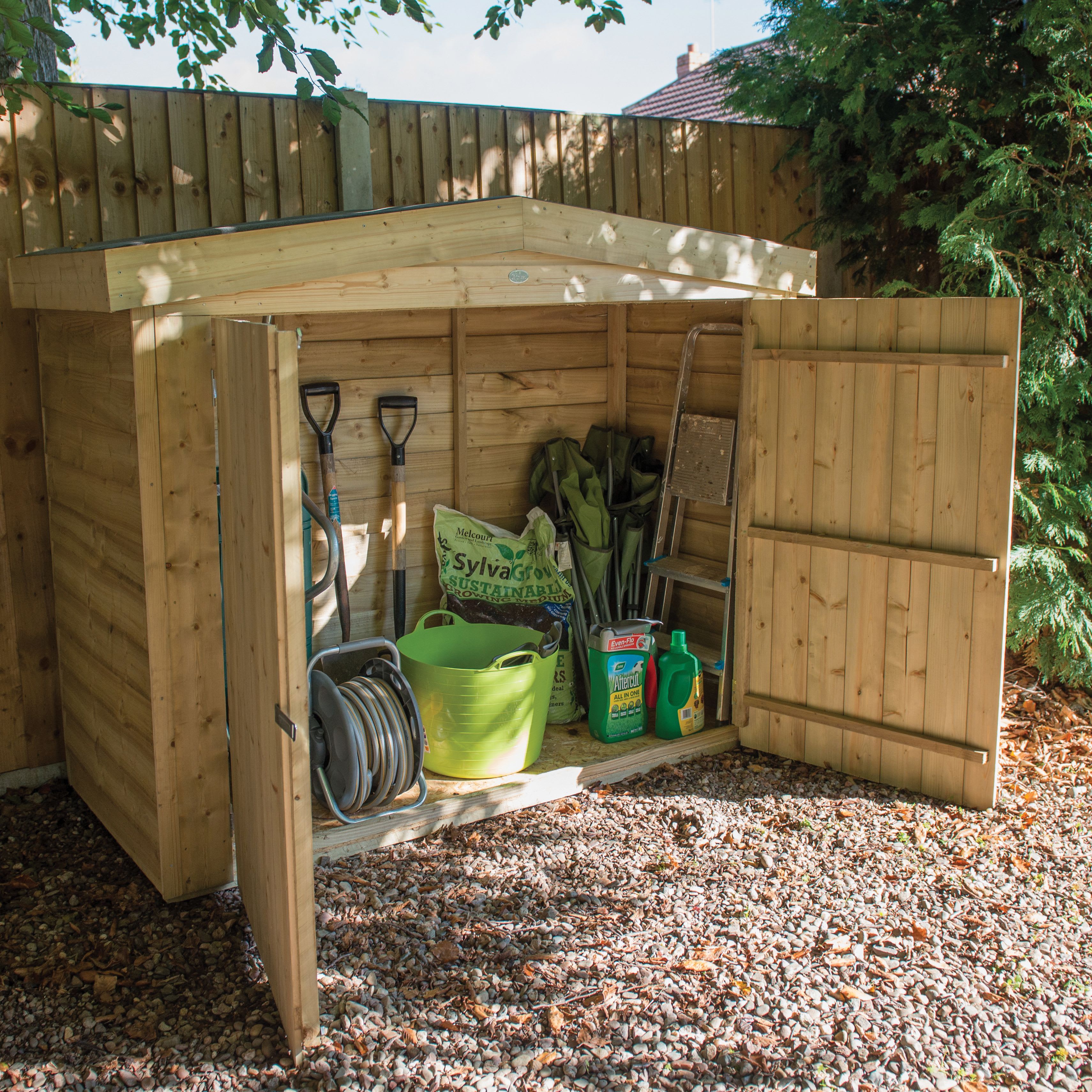 The Large Apex Outdoor Store from Forest Garden offers a spacious alternative to a shed. With large double doors, it is a practical and good looking storage solution for tools and large garden equipment. It is also ideal for use as a mower store or bike store with the capacity to comfortably house two adult and two children's bikes with space to spare for accessories. The base is mounted on Pressure Treated bearers to prevent damage from standing water. The pressure treatment with anti-rot preservative affords a 15 year guarantee against fungal decay.
