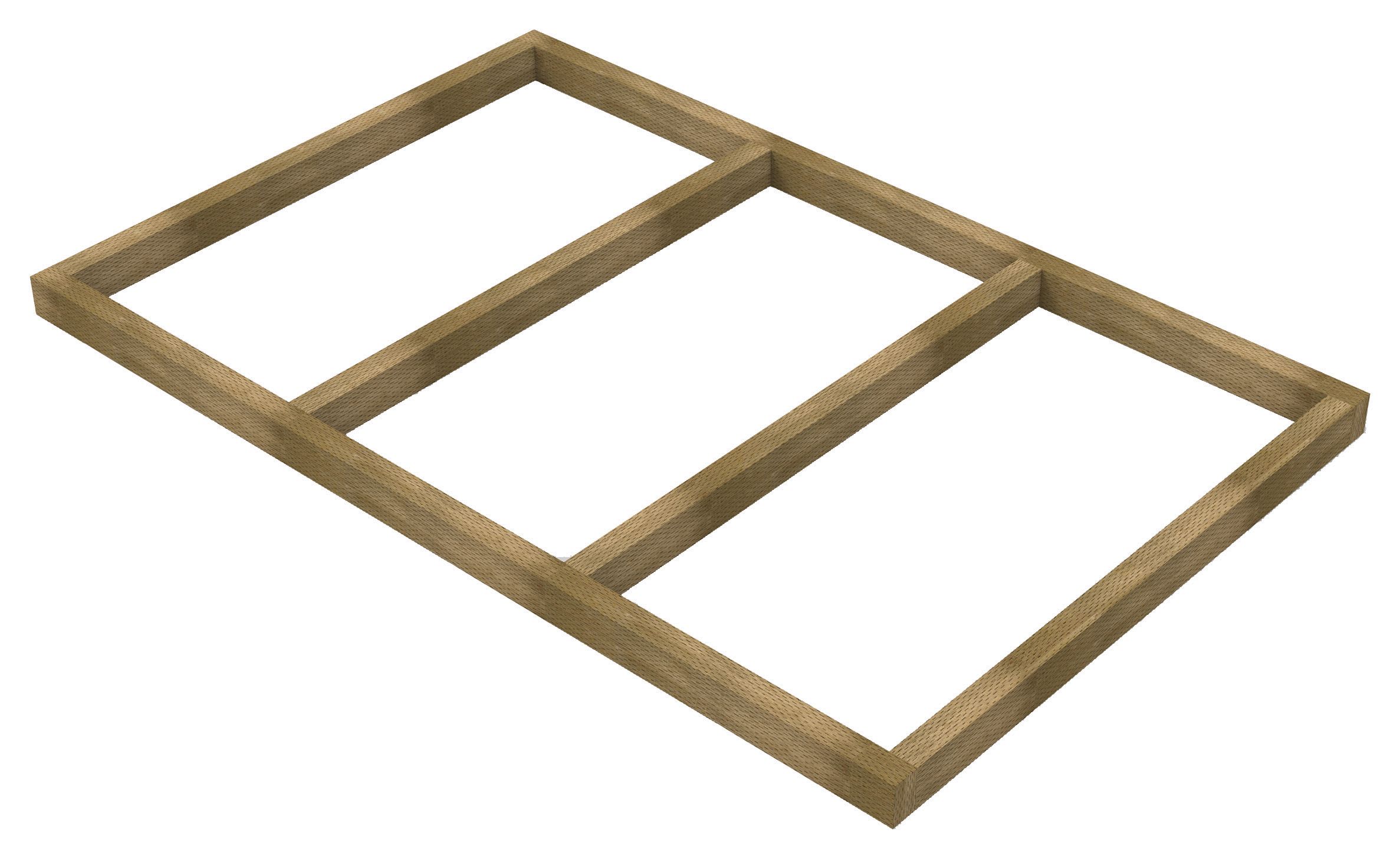 The Forest Garden Shed Base provides a solid, quick, easy and effective solution to preparing a base for a Forest Garden 6 x 4ft shed. Sheds must always be built on a solid and level base and poured concrete or concrete slabs are usually recommended but these do add cost, time and complexity. This wooden base is a quick and easy alternative to slabs or poured concrete. It has the added benefit of raising the shed, further isolating it from the ground which helps to prevent water splashback in heavy rain. This robust and long-lasting base has tiny incisions that go deep into the timber that allow the pressure treatment preservative to penetrate deep into timber, protecting it from rot and making it suitable for ground contact. Building the base is a simple case of screwing the timber sections together with screws that are provided. The base should be laid on level ground or propped with suitable material on uneven ground. While building a shed directly on dirt or grass is not recommend this shed base does make this a possibility provided a suitable heavy duty weed membrane is used under the base.