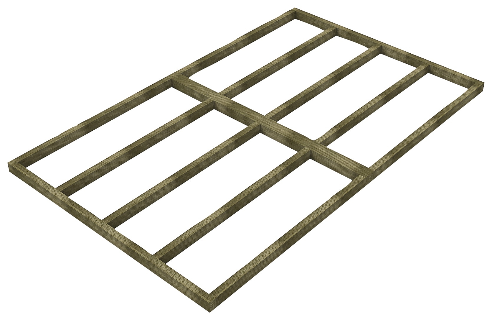 The Forest Garden Shed Base for Overlap Sheds provides a solid, quick, easy and effective solution to preparing a base for a Forest Garden 10 x 6ft shed. Sheds must always be built on a solid and level base and poured concrete or concrete slabs are usually recommended but these do add cost, time and complexity. This wooden base is a quick and easy alternative to slabs or poured concrete. It has the added benefit of raising the shed, further isolating it from the ground which helps to prevent water splashback in heavy rain. This robust and long-lasting base has tiny incisions that go deep into the timber that allow the pressure treatment preservative to penetrate deep into timber, protecting it from rot and making it suitable for ground contact. Building the base is a simple case of screwing the timber sections together with screws that are provided. The base should be laid on level ground or propped with suitable material on uneven ground. While building a shed directly on dirt or grass is not recommend this shed base does make this a possibility provided a suitable heavy duty weed membrane is used under the base.
