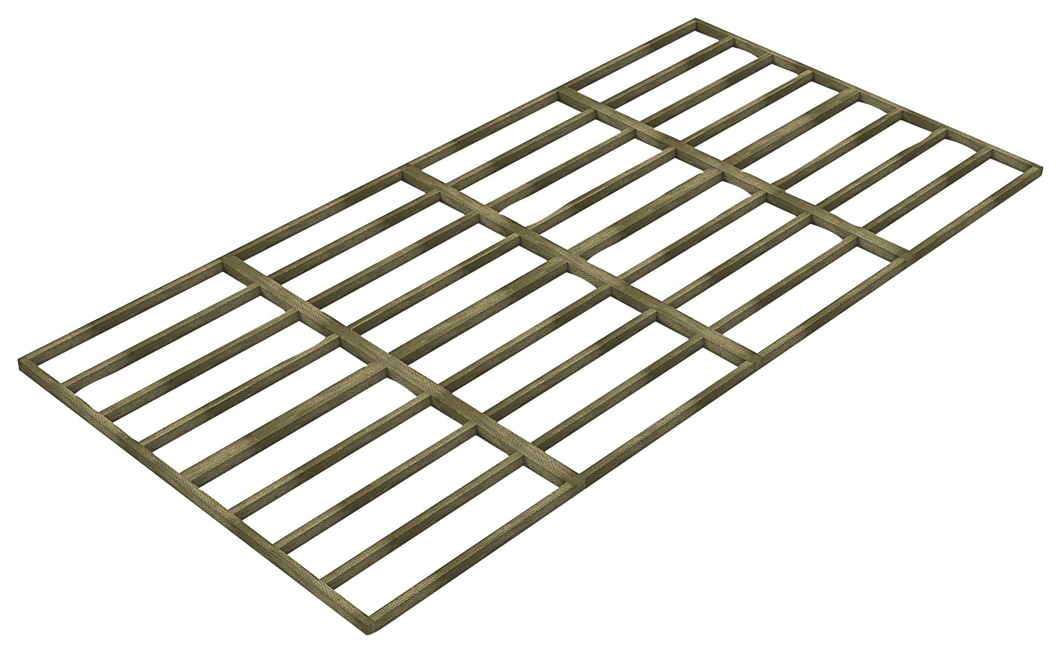 The Forest Garden Shed Base for Overlap Sheds provides and solid, quick, easy and effective solution to preparing a base for a Forest Garden 20 x 10ft shed. Sheds must always be built on a solid and level base and poured concrete or concrete slabs are usually recommended but these do add cost, time and complexity. This wooden base is a quick and easy alternative to slabs or poured concrete. It has the added benefit of raising the shed, further isolating it from the ground which helps to prevent water splashback in heavy rain. This robust and long-lasting base has tiny incisions that go deep into the timber that allow the pressure treatment preservative to penetrate deep into timber, protecting it from rot and making it suitable for ground contact. Building the base is a simple case of screwing the timber sections together with screws that are provided. The base should be laid on level ground or propped with suitable material on uneven ground. While building a shed directly on dirt or grass is not recommend this shed base does make this a possibility provided a suitable heavy duty weed membrane is used under the base.