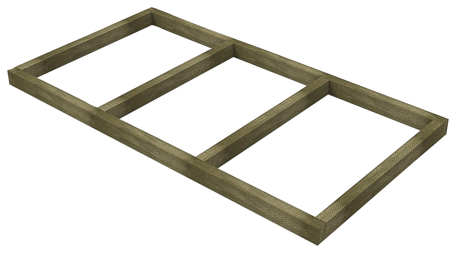 The Forest Garden Shed Base for Overlap Sheds provides a solid, quick, easy and effective solution to preparing a base for a Forest Garden 6 x 3ft shed. Sheds must always be built on a solid and level base and poured concrete or concrete slabs are usually recommended but these do add cost, time and complexity. This wooden base is a quick and easy alternative to slabs or poured concrete. It has the added benefit of raising the shed, further isolating it from the ground which helps to prevent water splashback in heavy rain. This robust and long-lasting base has tiny incisions that go deep into the timber that allow the pressure treatment preservative to penetrate deep into timber, protecting it from rot and making it suitable for ground contact.Building the base is a simple case of screwing the timber sections together with screws that are provided. The base should be laid on level ground or propped with suitable material on uneven ground. While building a shed directly on dirt or grass is not recommend this shed base does make this a possibility provided a suitable heavy duty weed membrane is used under the base.