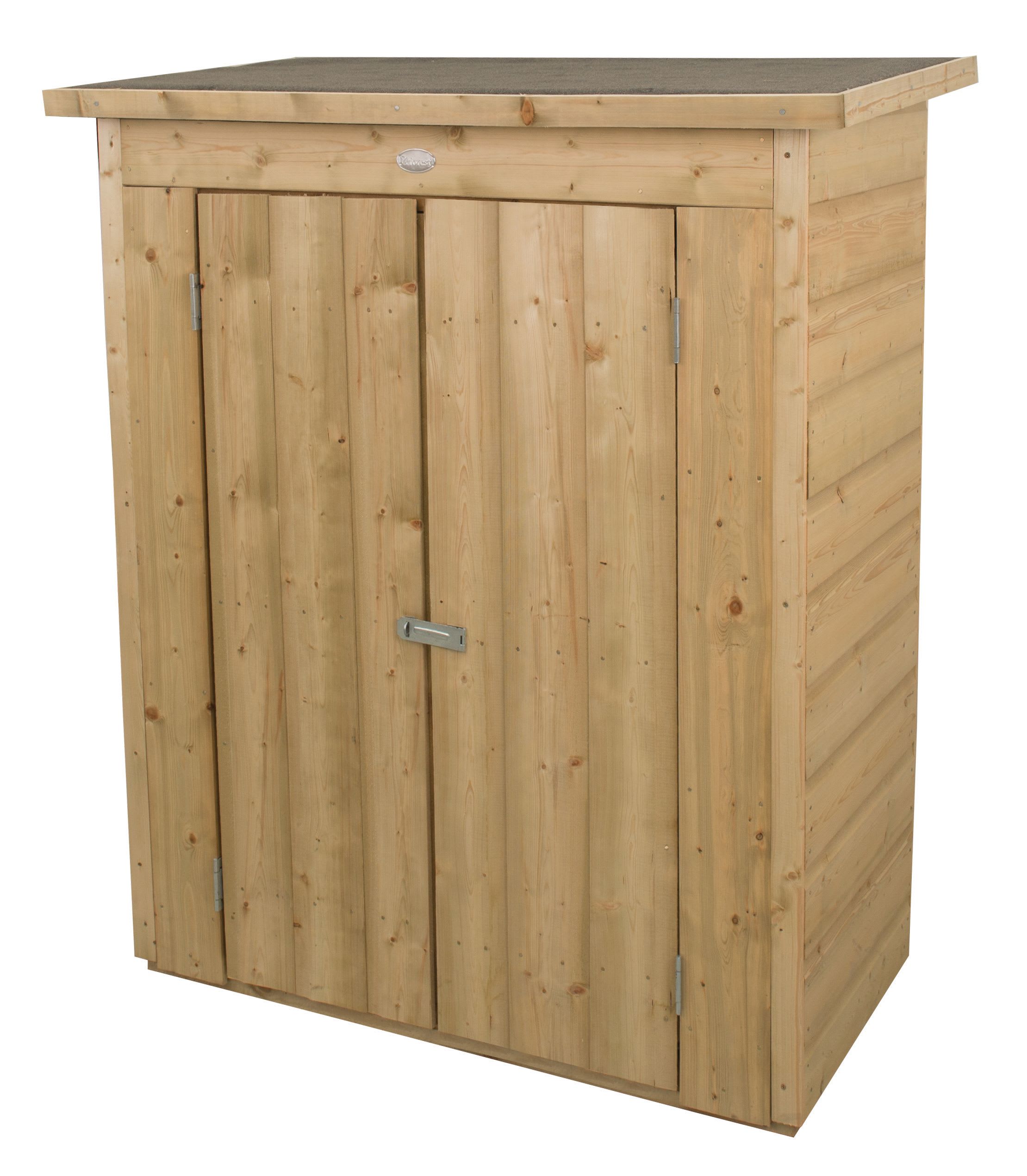 The Shiplap Pent Garden Store from Forest Garden is perfect for outdoor areas where space is limited, and is an attractive unit that will look great in any garden. With a generous 600L capacity, its height means it is easy to store taller items including brooms, furniture, forks, spades and kid’s scooters. With a relatively compact footprint, this means the store can be sited near front or back doors, on a patio or in any garden setting. The subtle design has a robust interlocking shiplap tongue and groove construction made from smooth-planed, pressure treated boards with a natural colour finish. An anti-fungal preservative gives the store a 15 year guarantee against rot and decay. The floor is mounted on pressure treated bearers that raise the unit off the ground to keep it dry and the roof is finished with a high quality green mineral felt.