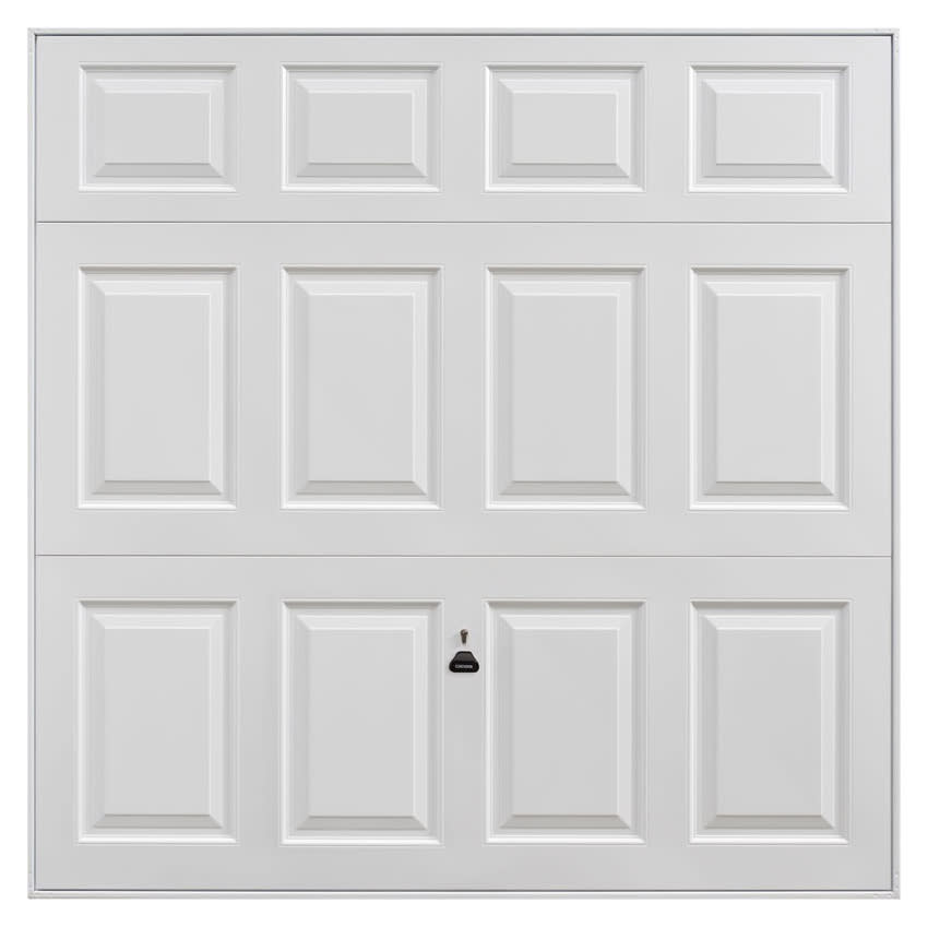 Garador Up and Over Beaumont Garage Door in White are constructed around a galvanised steel box-section chassis, providing a boundary structure around which to build the door. Garage doors are manufactured with two galvanised steel braces which are spot welded to the inside, reinforcing the door leaf and ensuring a rigid door panel. Manufactured from high-grade galvanised steel, the closed “box section” chassis helps to ensure a strong and stable door construction. Frameless garage doors do not include a frame.