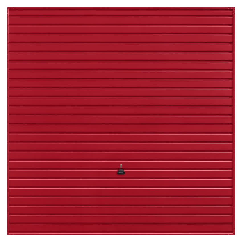 Garador Up and Over Horizon Garage Door in Ruby Red are constructed around a galvanised steel box-section chassis, providing a boundary structure around which to build the door. Garage doors are manufactured with two galvanised steel braces which are spot welded to the inside, reinforcing the door leaf and ensuring a rigid door panel. Manufactured from high-grade galvanised steel, the closed “box section” chassis helps to ensure a strong and stable door construction. Frameless garage doors do not include a frame.