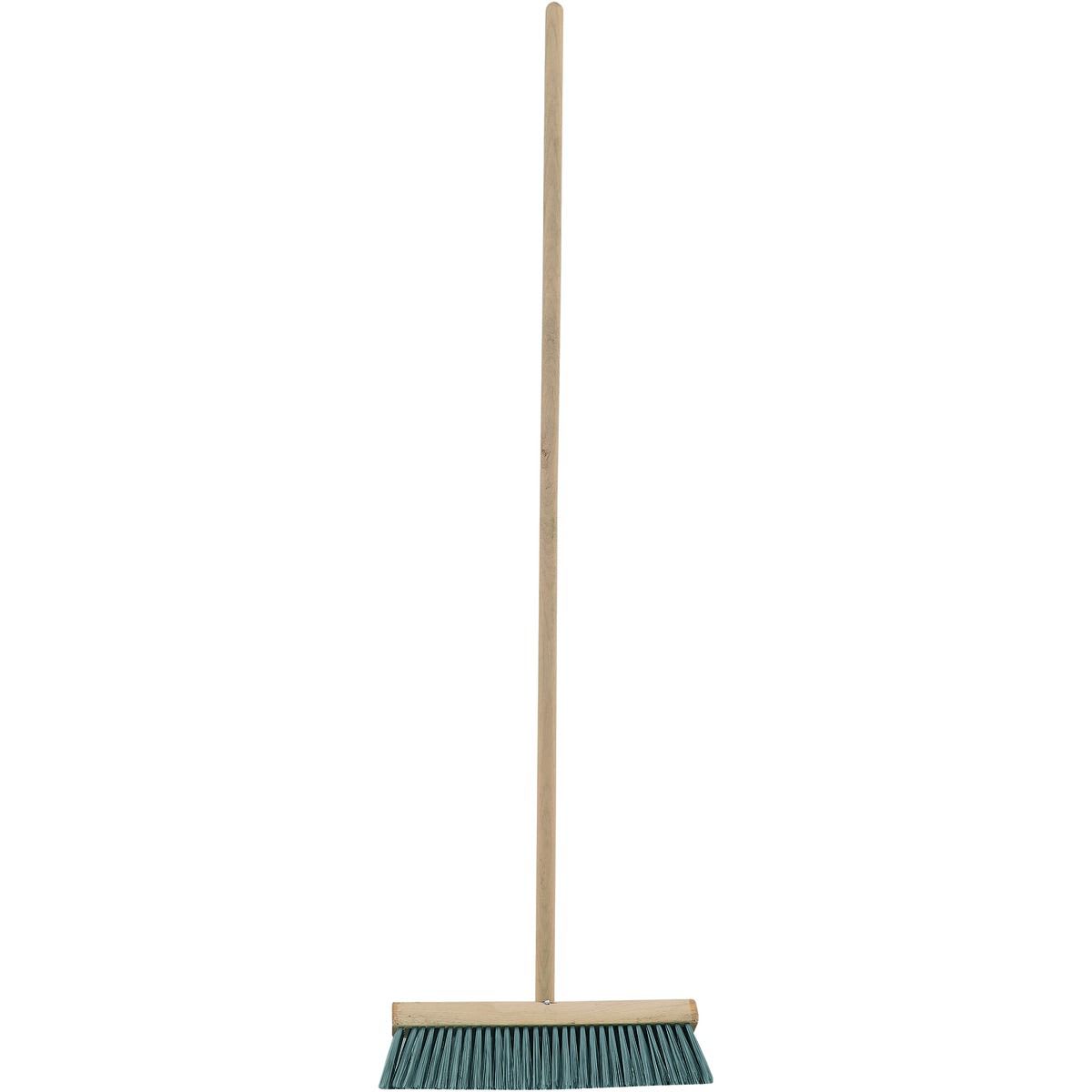 The General Purpose Garden Broom is fitted with a sturdy 48-inch wooden handle, making it ideal for clearing light dust and debris and effectively sweeping concrete floors. Manufactured in the UK, it features a durable construction using PVC, pine, and rubberwood materials, ensuring it is hardwearing and long-lasting.
