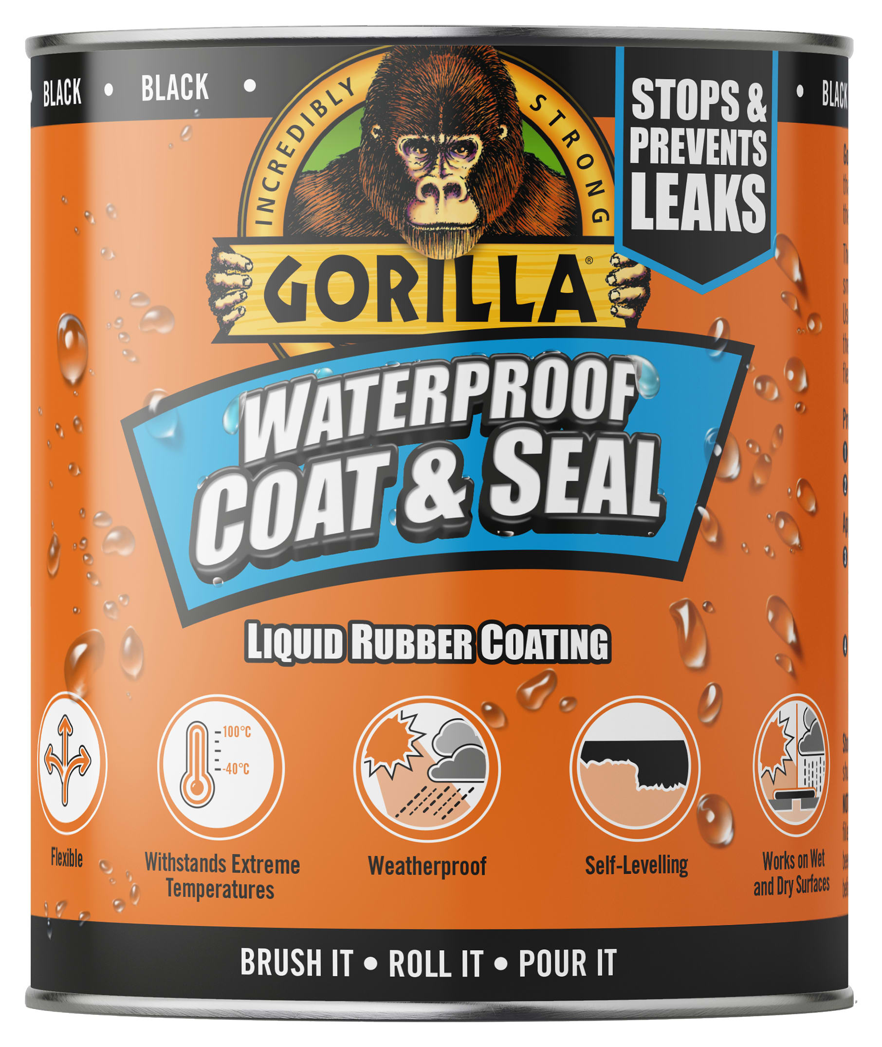 Gorilla® Waterproof Coat & Seal is a flexible, rubberised coating that seals out water, air and moisture. Perfect for repairing leaks, the liquid is easy to apply – you simply brush it, roll it or pour it.