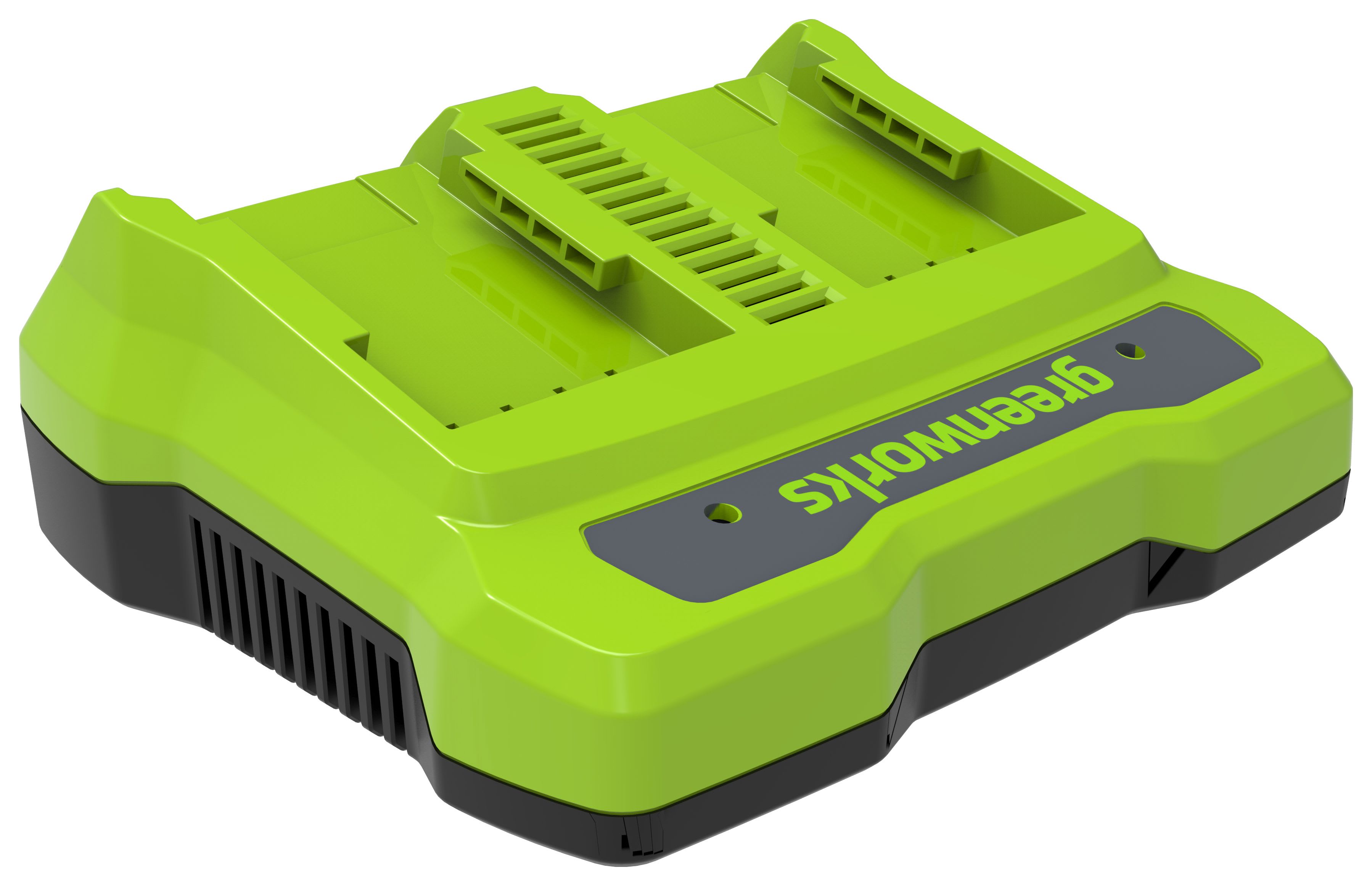 The Greenworks G24X2UC2 24V 2A dual charger features integrated battery cooling and charge status indicator LED. Greenworks batteries utilise the latest Lithium-Ion technology for optimum performance. Benefits include fast charging times, long runtimes and no self discharge. The G24X2UC2 is compatible with all 24V Greenworks batteries (G24B2 & G24B4) and can be used flat or wall mounted. The dual port design allows simultaneous charging of two 24V batteries.