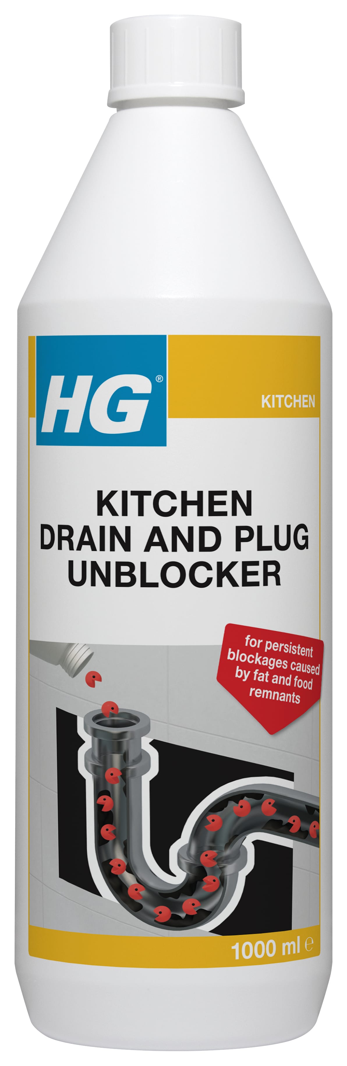 - HG Drain Unblocker for kitchen sinks: A fast acting drain unblocker and kitchen sink cleaner. Clears the pipes quickly and easily; ideal for persistent blockages caused by fat, oil and food remnants