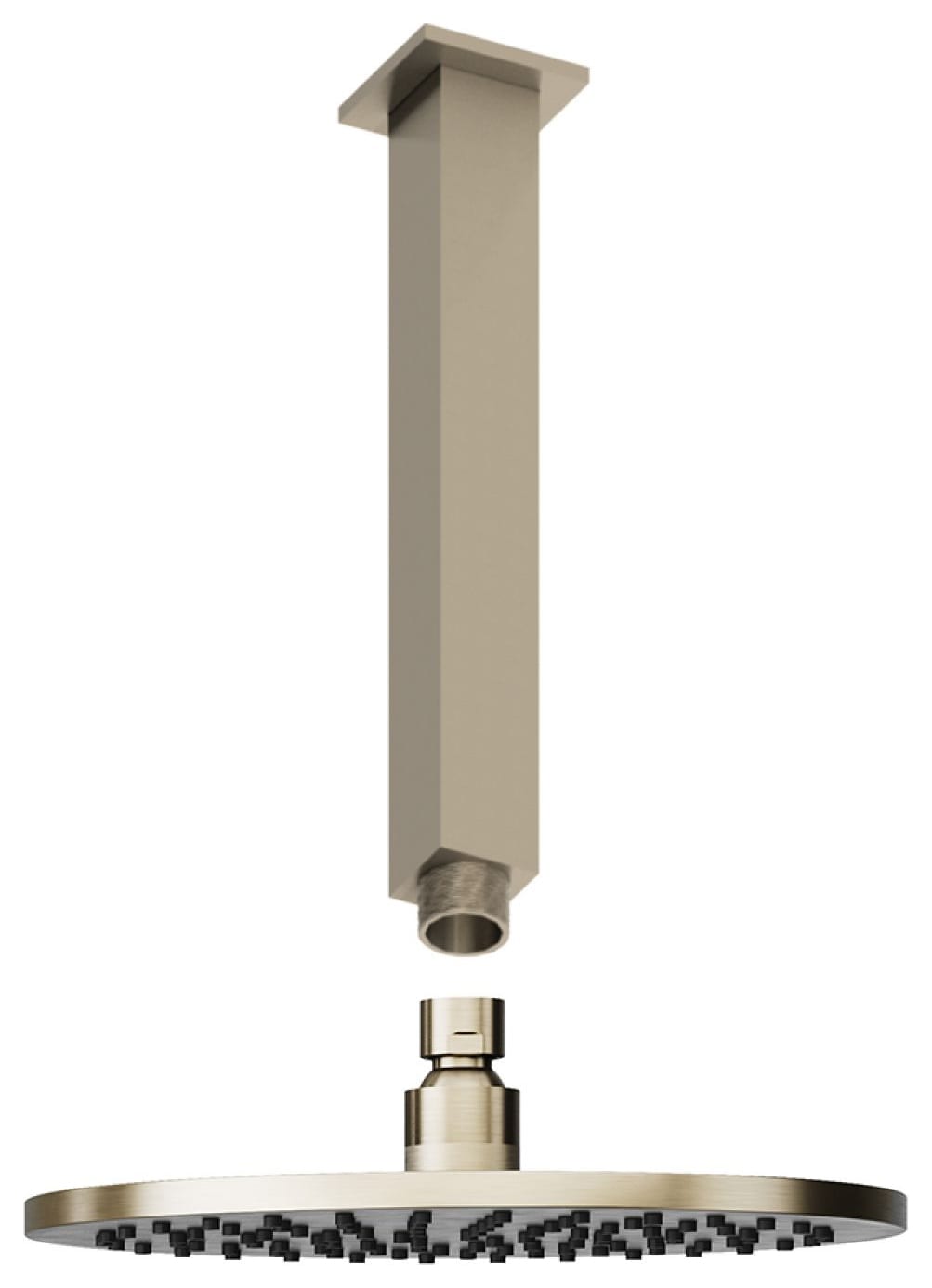 Hadleigh 250mm Ceiling Mounted Round Shower Head with Square Arm - Brushed Nickel