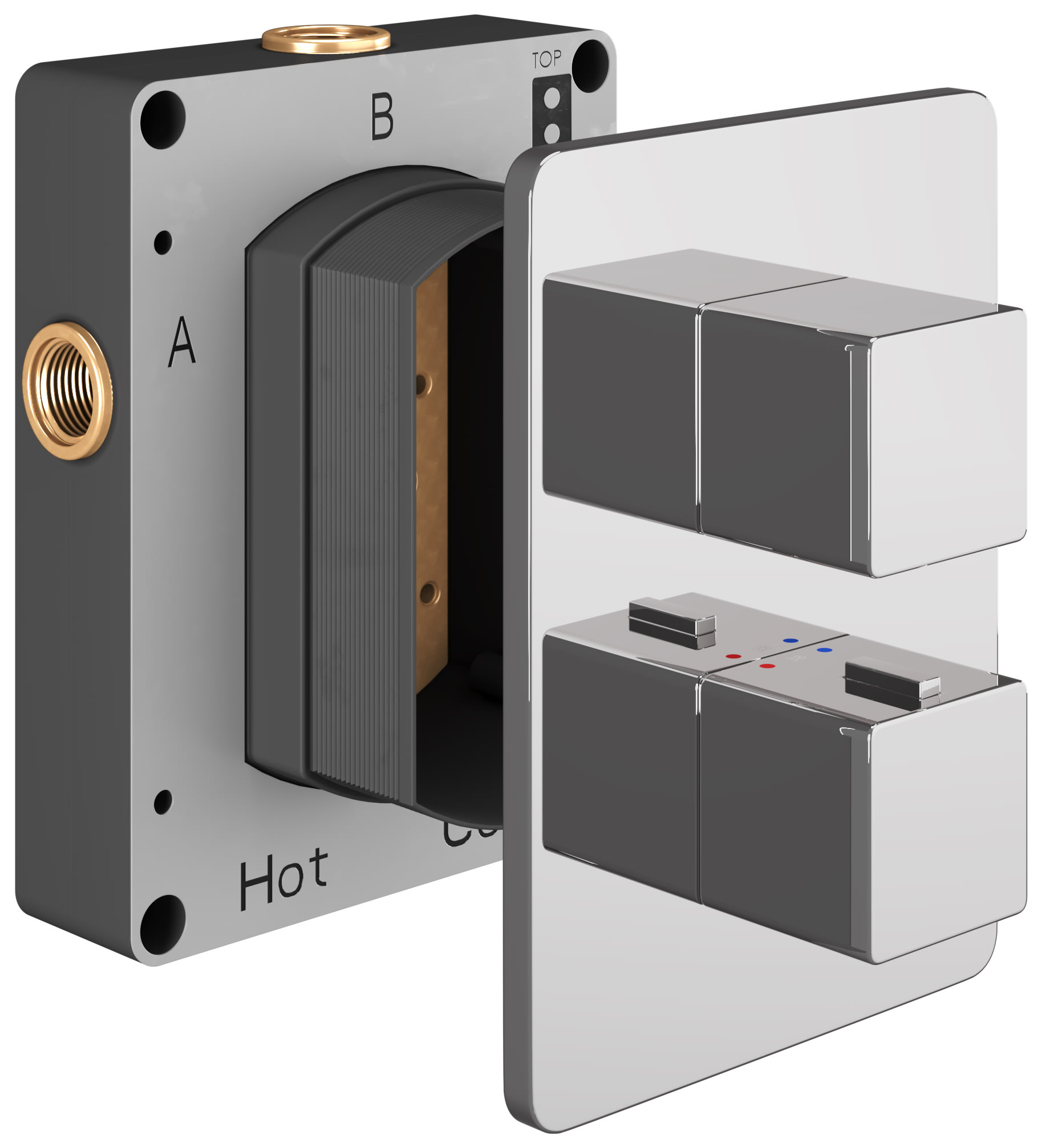 Hadleigh Concealed 2 Outlet Square Thermostatic Shower Valve - Chrome