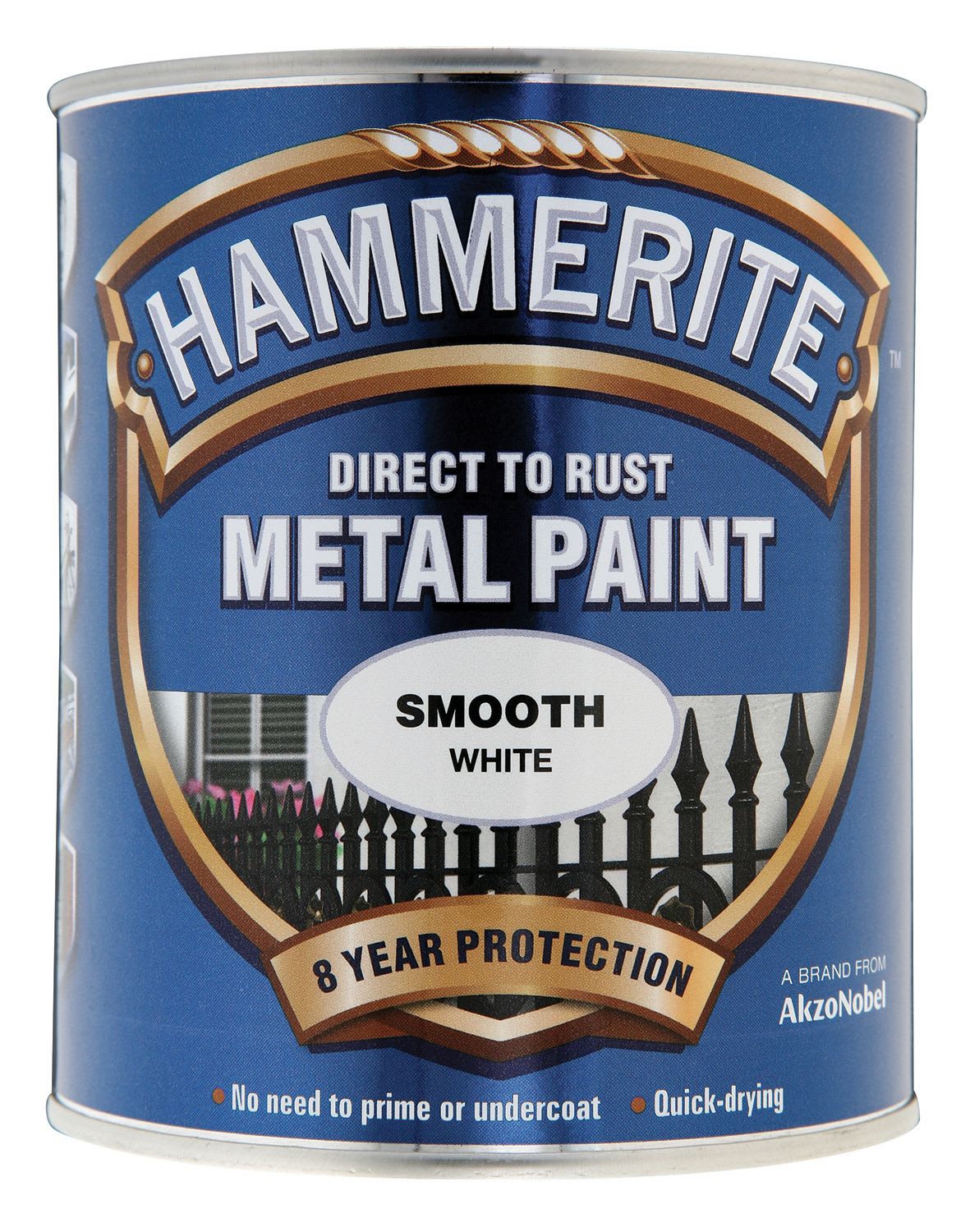 The Hammerite Metal Smooth Paint is specially formulated to perform as primer, undercoat and topcoat in one. This paint forms a tough barrier which repels moisture and provides long lasting protection. Corrosion resistant with a high gloss colour retention. Can be applied directly onto rusty metal, just use a wire brush to remove loose paint etc. to leave a dry dirt-free surface.