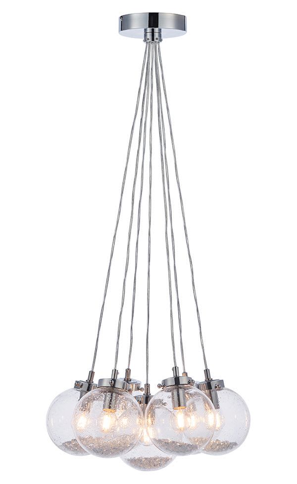 The Harbour Features 7 Individual Globe Pendants Lights Joined Together. The Striking Clear Bubble Effect Glass Shade Contains Faceted Glass Details For Extra Sparkle. Alternatively, These Can Be Removed, If You Desire A More Simple Lighting Look. Harbour Is Finished In A Chrome Plate.
