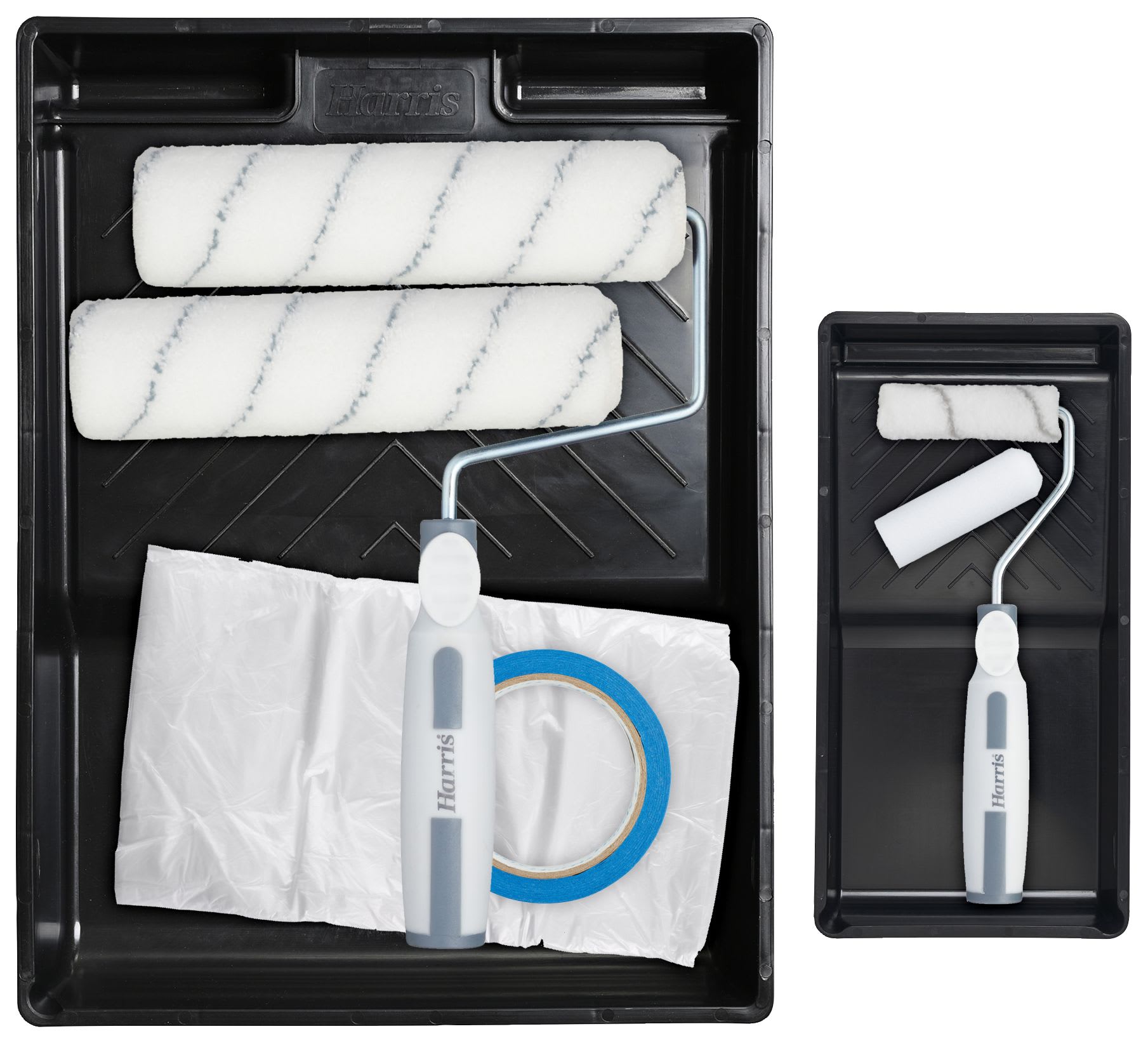 - Includes: 2 x roller trays, 2 x roller frames, 4 x roller sleeves, masking tape & dust sheet