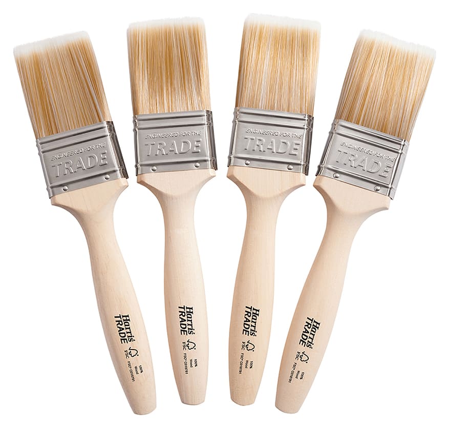 This Harris Trade four-pack of 2" fine-tipped paint brushes is the perfect box of brushes for completing an indoor project that involves painting skirting, cutting-in, framing and finishing a wall surface. These paint brushes deliver a smooth, even finish and provide excellent control when tackling precision areas. The comfortable wooden handles are made from FSC® Certified wood and the synthetic filaments are easy to clean for re-use.