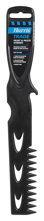 This Harris Trade multi-purpose paint and paste stirrer does the job well and quickly - mixes paint thoroughly and removes excess paint from your roller sleeves and brushes.