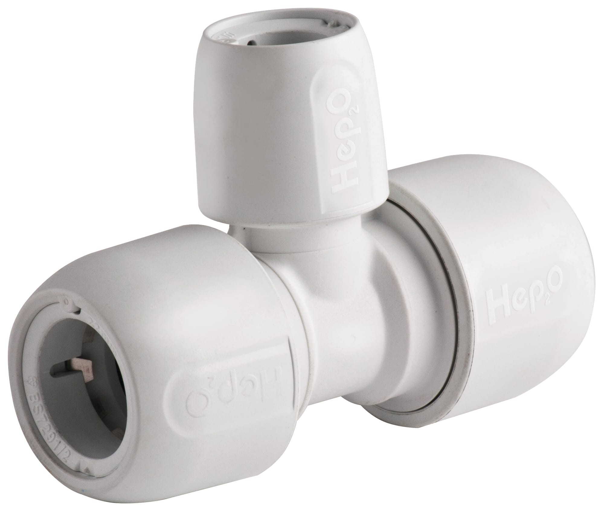 The Hep2O HD13/22WS Branch Reduced Tee is designed for use with Hep2O pipes, providing a reliable and flexible plumbing solution for both hot and cold water systems. It allows for easy connection of reduced pipe branches in plumbing systems. It is ideal for quick repairs or new installations and comes with 50 year guarantee.