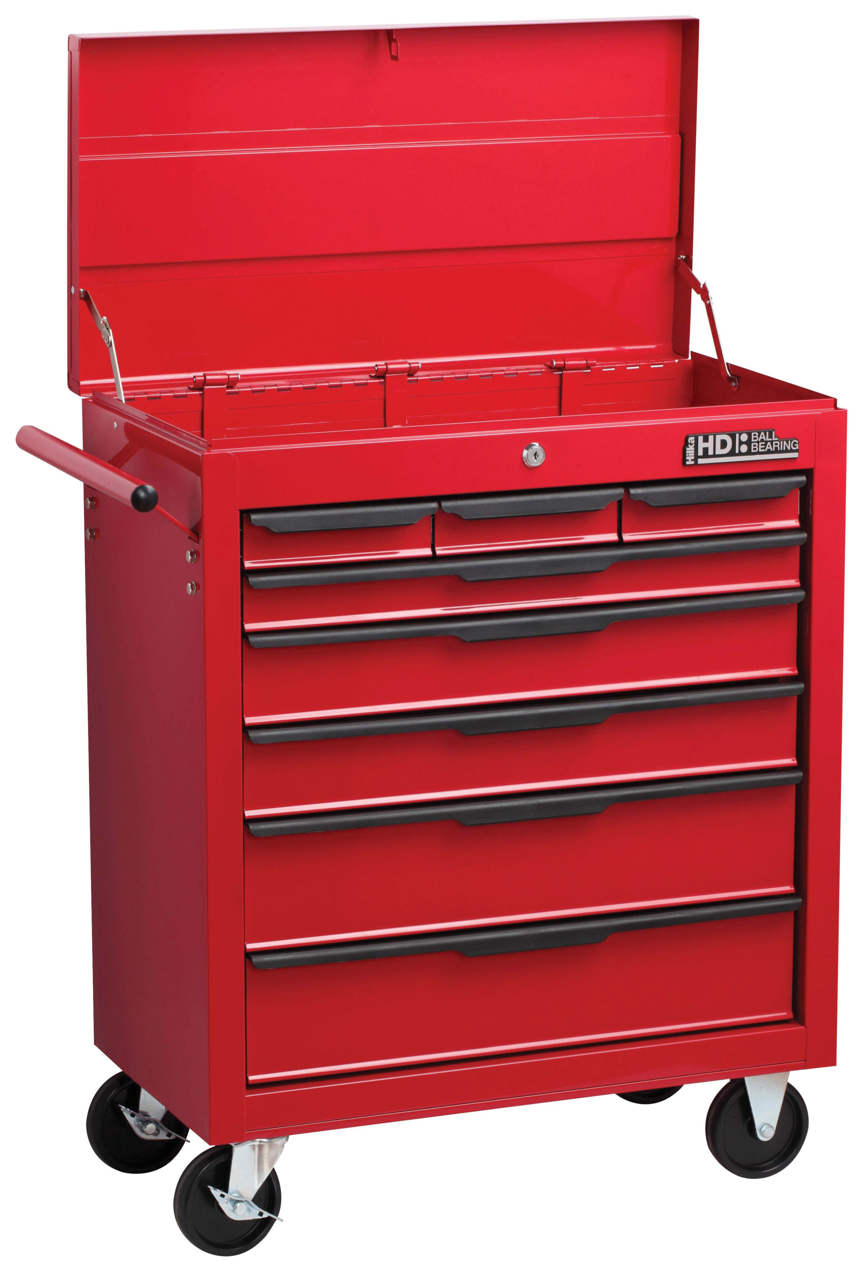 Hilka Heavy Duty 8 Drawer Tool Trolley with Lid - Red