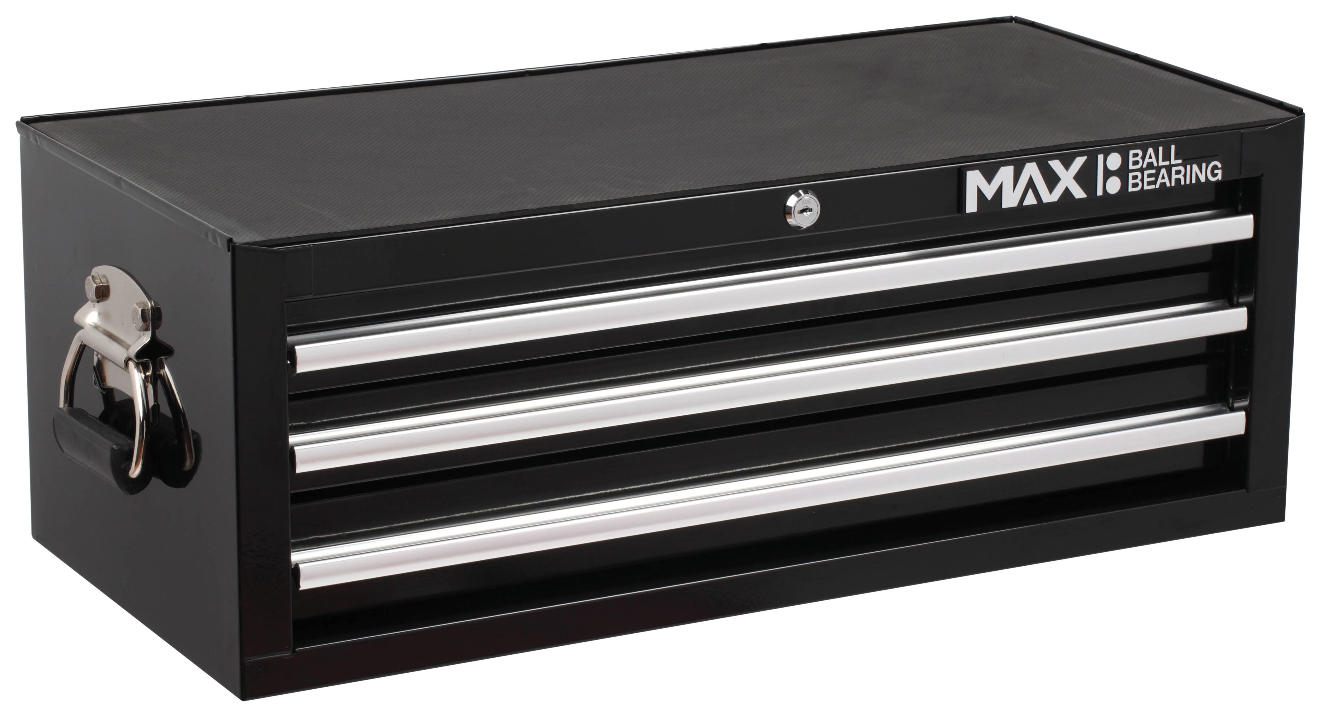 Heavy duty all steel construction with ball bearing slides with positive stop. Reinforced base comes with protective drawer liners, keyed locking mechanism, full length aluminium drawer pulls and chrome side handles.