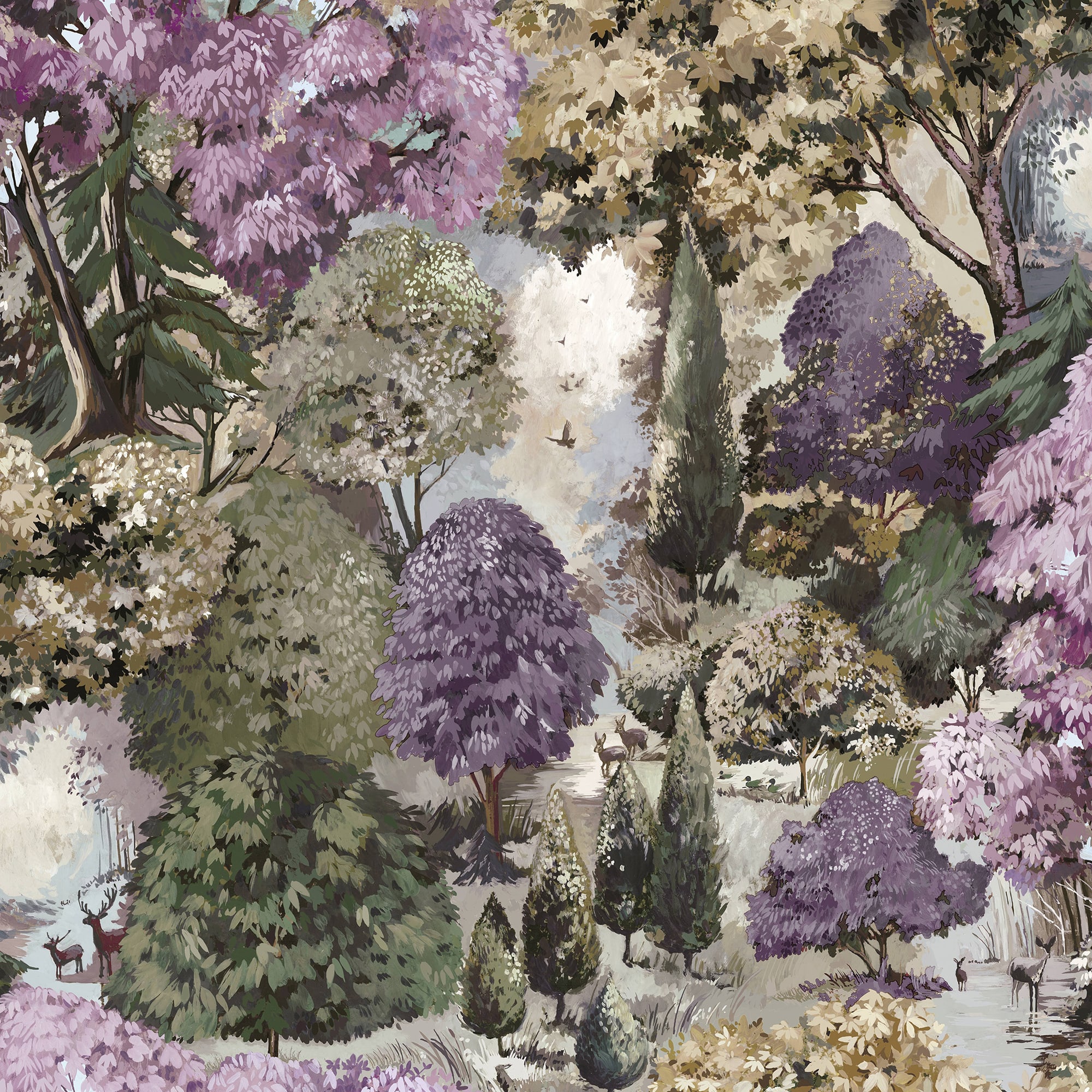 Holden Basildon Forest Mulberry & Green Wallpaper - 10m