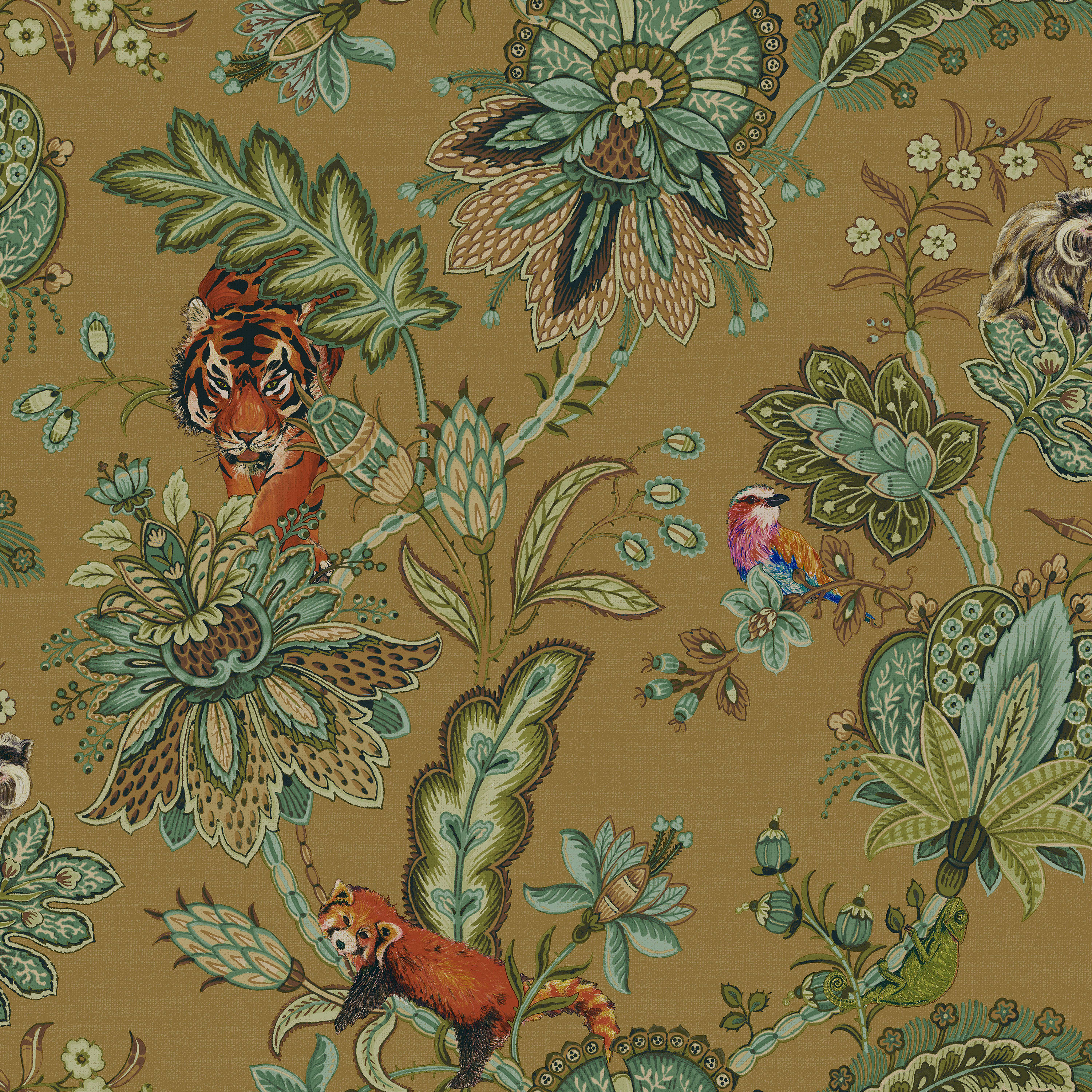 Holden Decor Animal Jacobean Ochre Wallpaper - 10.05m x 53cm