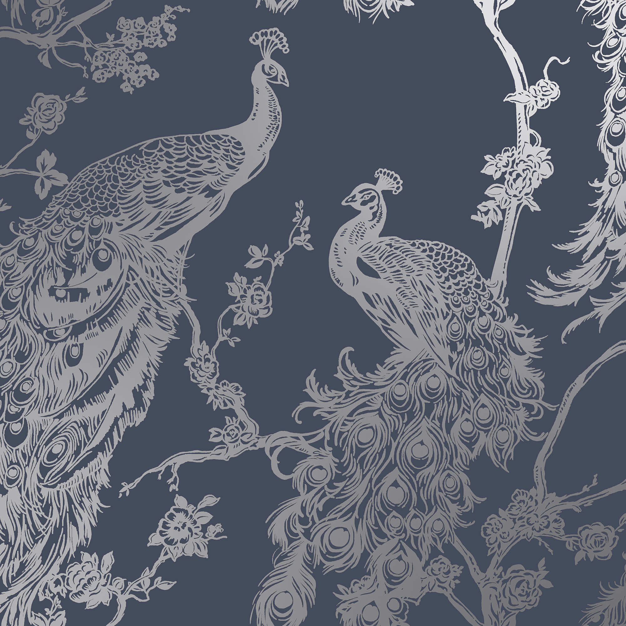Holden Decor Glistening Peacock Navy Wallpaper - 10.05m x 53cm