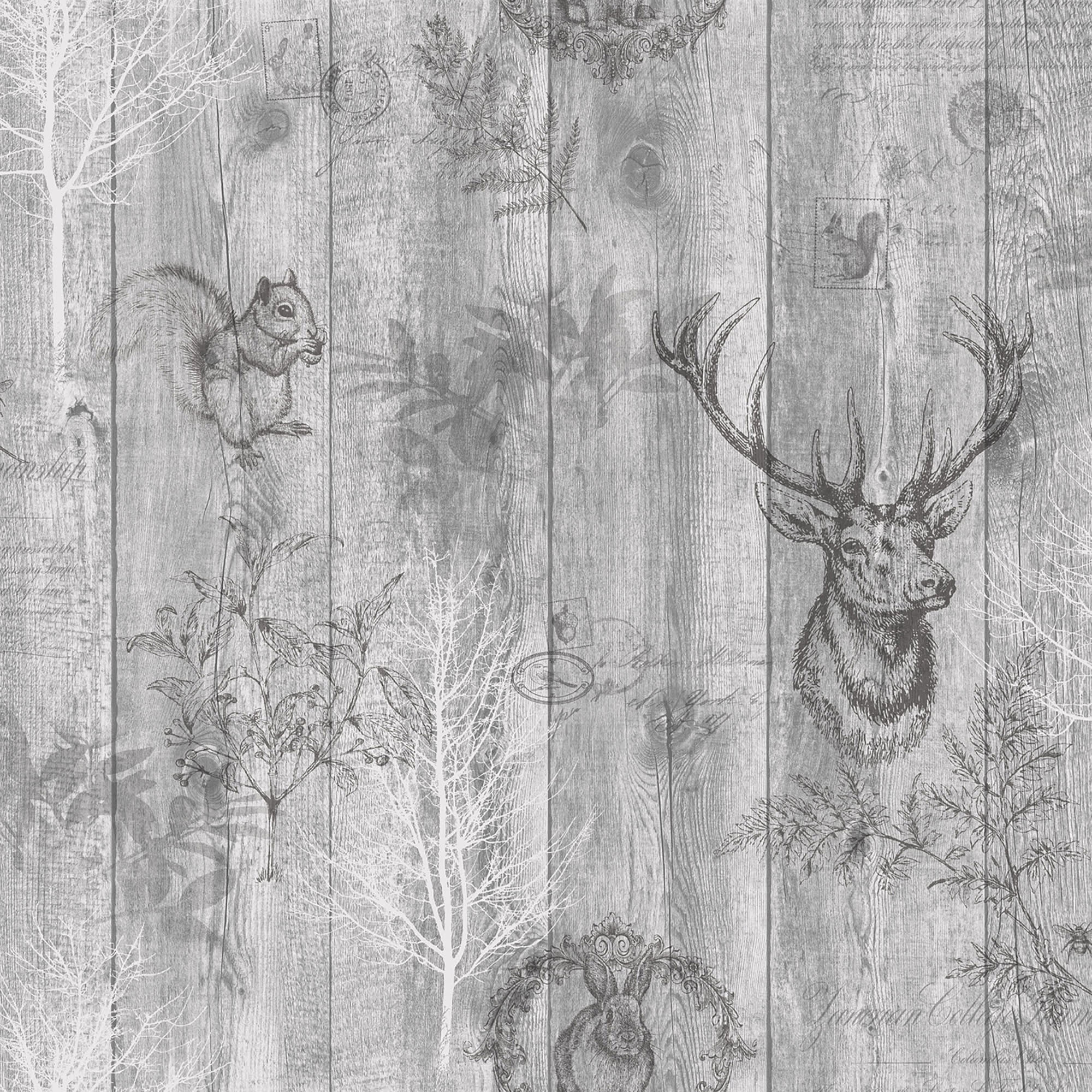 Holden Decor Stag Wood Panel Grey Wallpaper - 10.05m x 53cm