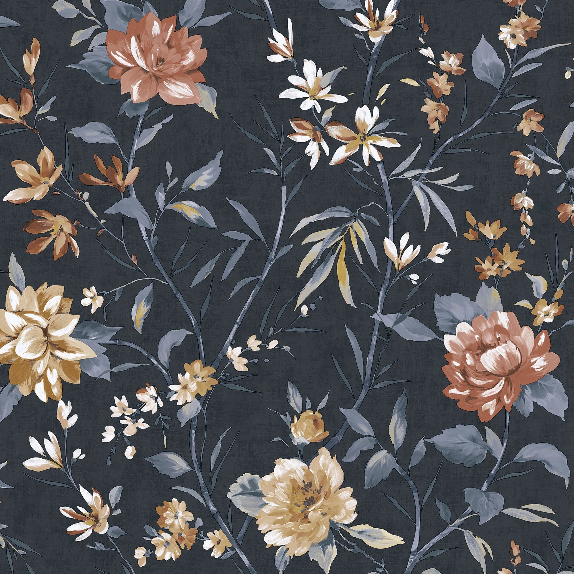This Oriental Trail Navy Wallpaper features trailing Camellia flowers embodies the understated elegance of Japanese aesthetics. A lush floral display evokes a sense of tranquillity and simplicity, with a soft, textured back-drop against the bright blooming flowers.