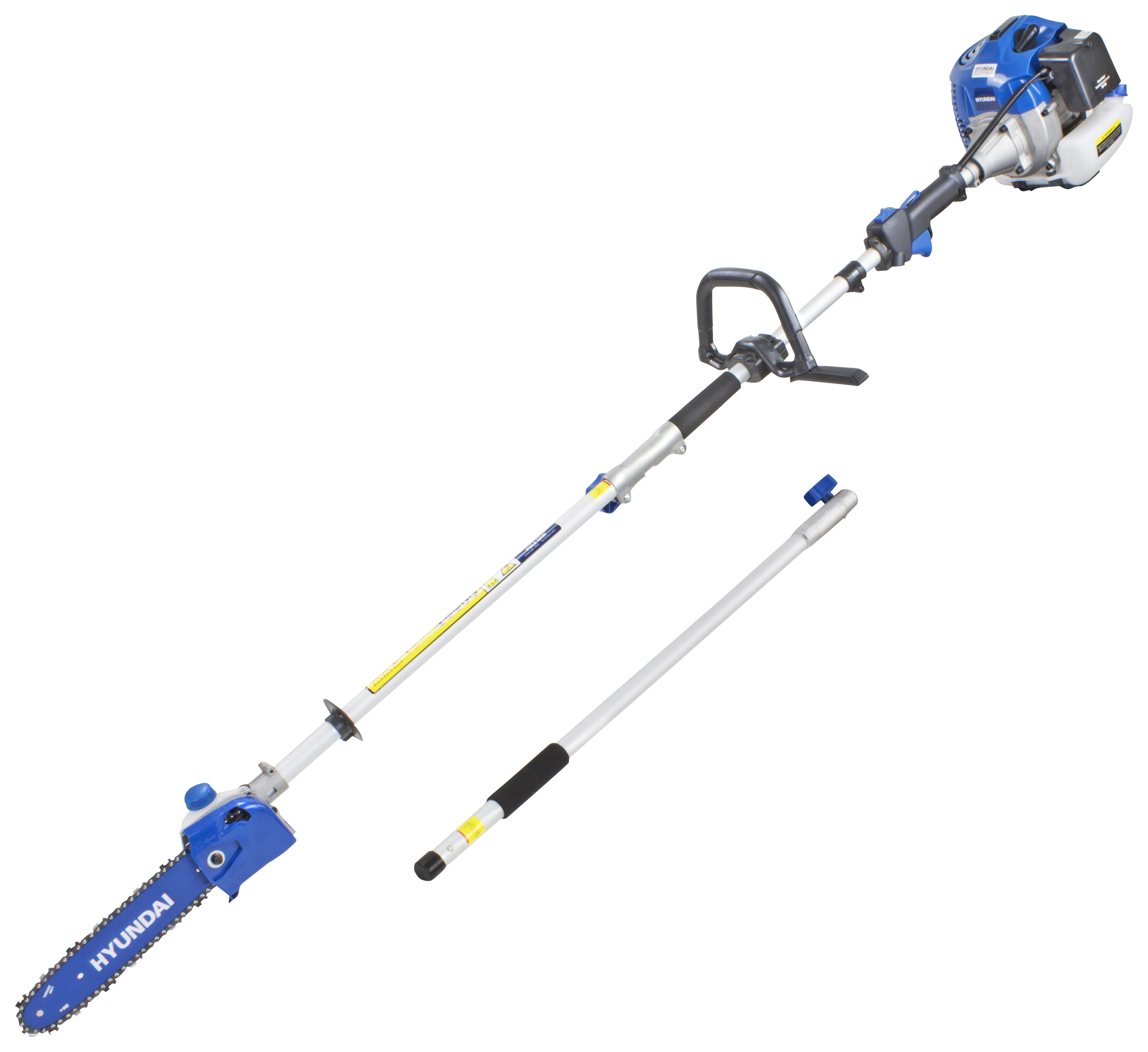 The Hyundai Long Reach Petrol Pole Saw is a 52cc long reach petrol pole saw from Hyundai, designed to provide impressive cutting power on branches in hard to reach locations. This pole pruner provides an impressive reach of up to 2.7m when fully extended, allowing you to prune safely with your feet firmly on the ground, no need to take risks using a ladder.