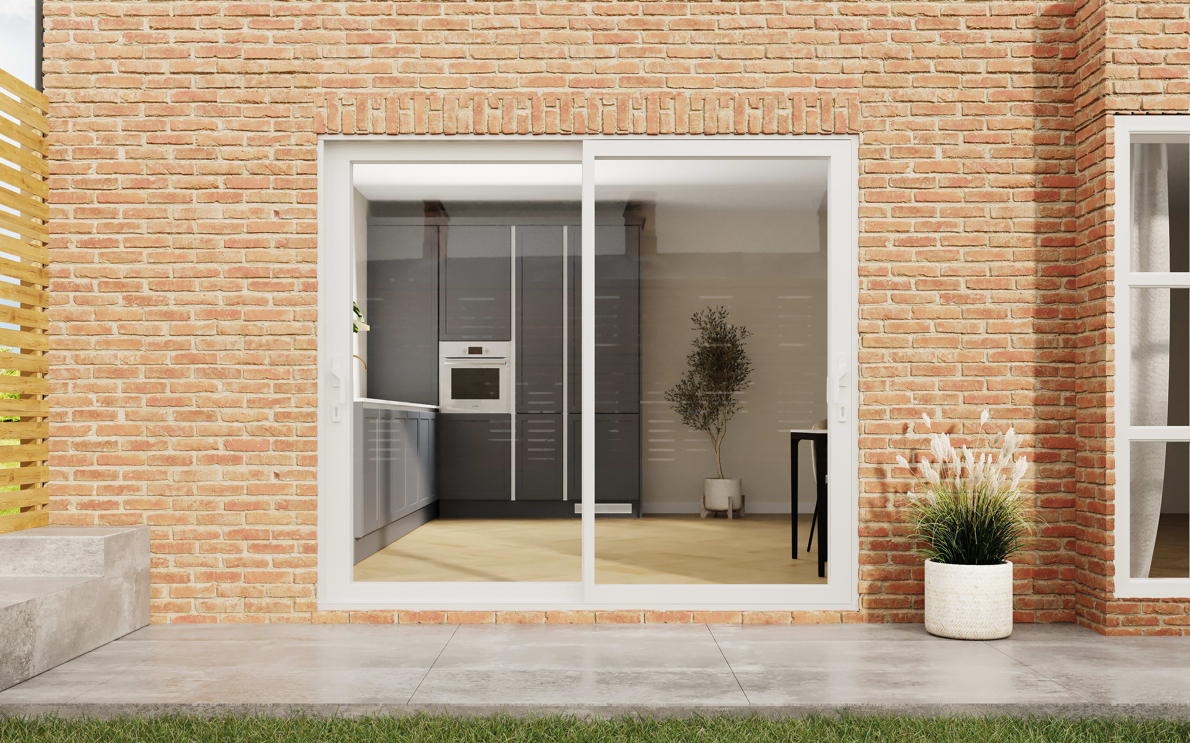 JCI White Aluminium Inline Sliding Patio Door Set offers space saving versatility with both doors opening as standard. Featuring the slimmest 47mm sightlines for maximum light with uninterrupted views, the powder coated aluminium profiles are strong and durable, very low maintenance and lightweight for effortless operation.