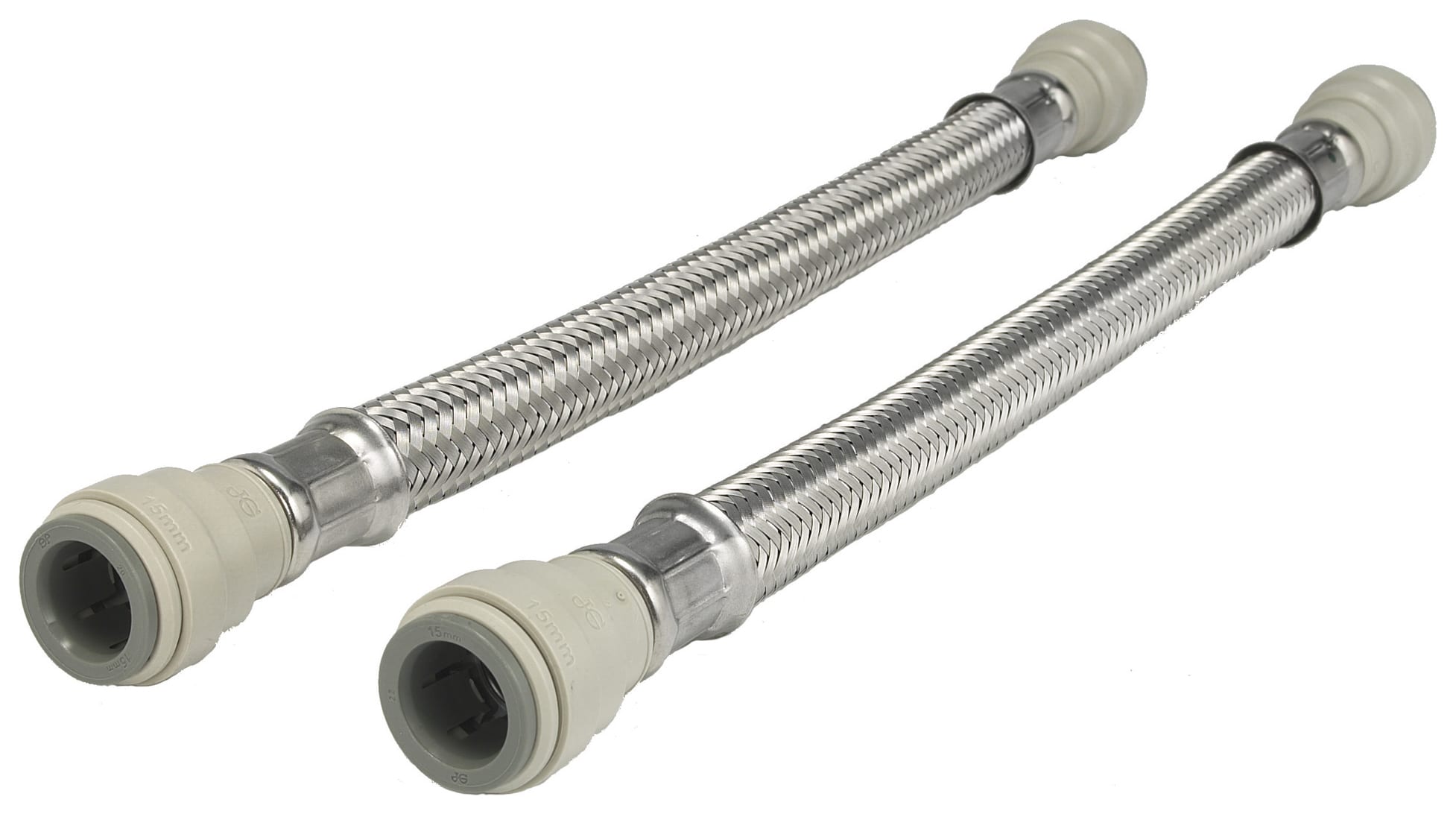JG Speedfit Flexi hose (braided) for the connection of plastic or copper pipe. The flexi hose is ideal for the connection of two pipes where the angle is too steep to bend the pipe to make a connection. Simply push the push-fit fitting fully onto the pipe. To demount the connection, push the collet towards the body of the push-fit fitting and pull the pipe release. The JG Speedfit Flexi hose (braided) is quicker and easier to install in confined spaces than traditional methods as it eliminates the need for hot works or tools.