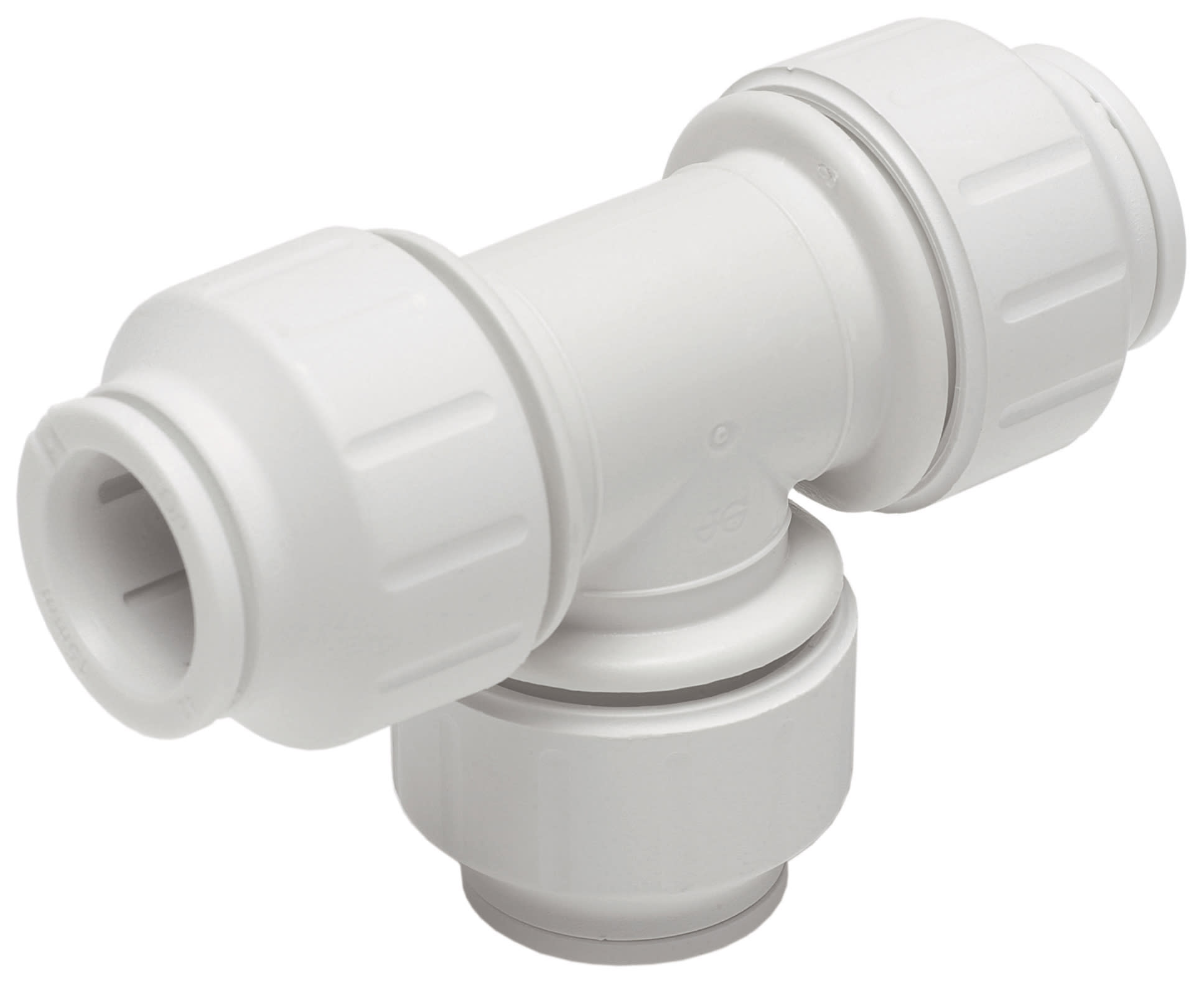 JG Speedfit equal tee push-fit fitting for the connection of three equal sized plastic or copper pipes. Simply push the push-fit fitting fully onto the pipe and twist the plastic nut clockwise to lock in place. To demount the connection, unlock the nut by hand and push the collet towards the body of the push-fit fitting and pull the pipe to release. The JG Speedfit equal tee push-fit fitting is up to 40% faster to install than traditional methods and is easier to use in confined spaces by removing the need for hot works and tools.