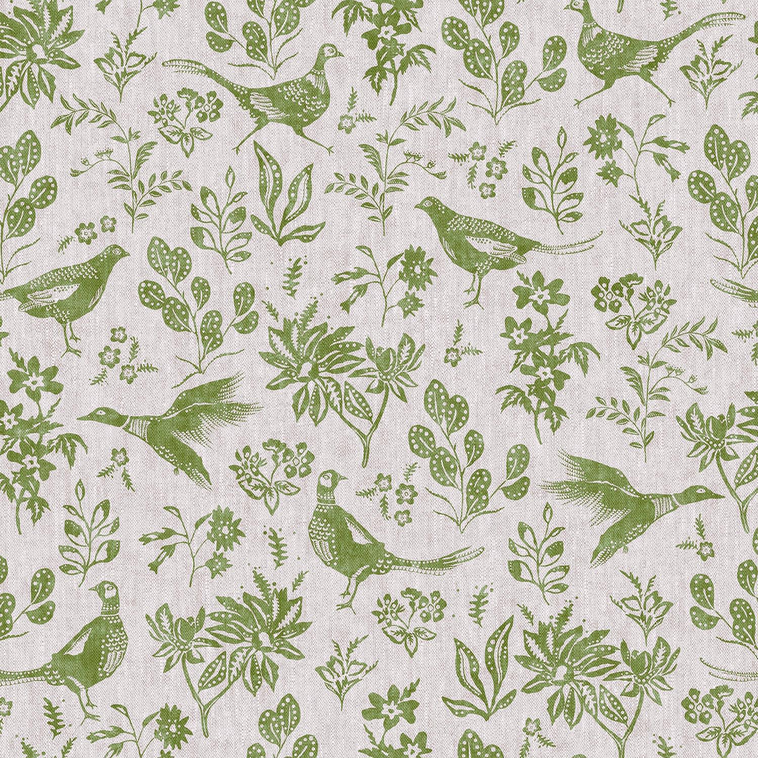 Joules Pheasant Print Linen/Green Wallpaper Sample