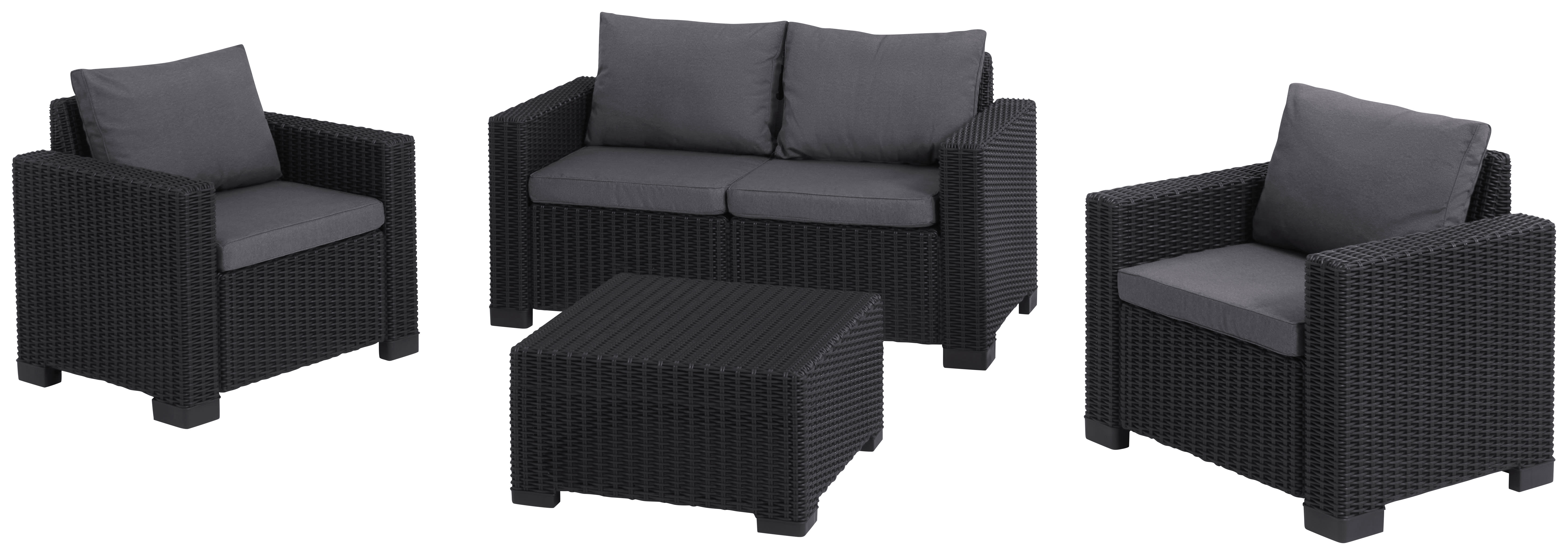 Keter California 4 Seater Outdoor Garden Furniture Lounge Set - Graphite with Grey Cushions