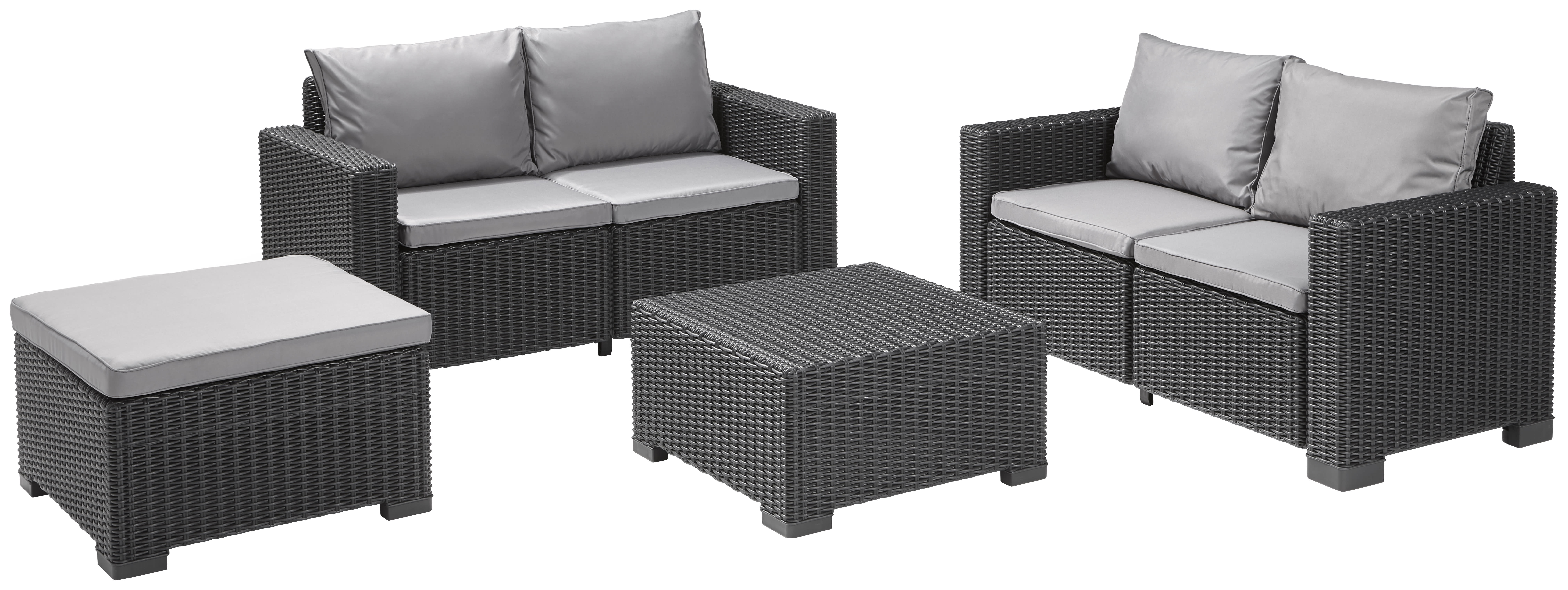 Keter California 5 Seater with 2 x 2 seater sofa's and a square foot stool Outdoor Garden Furniture Lounge Set - Graphite with Grey Cushions