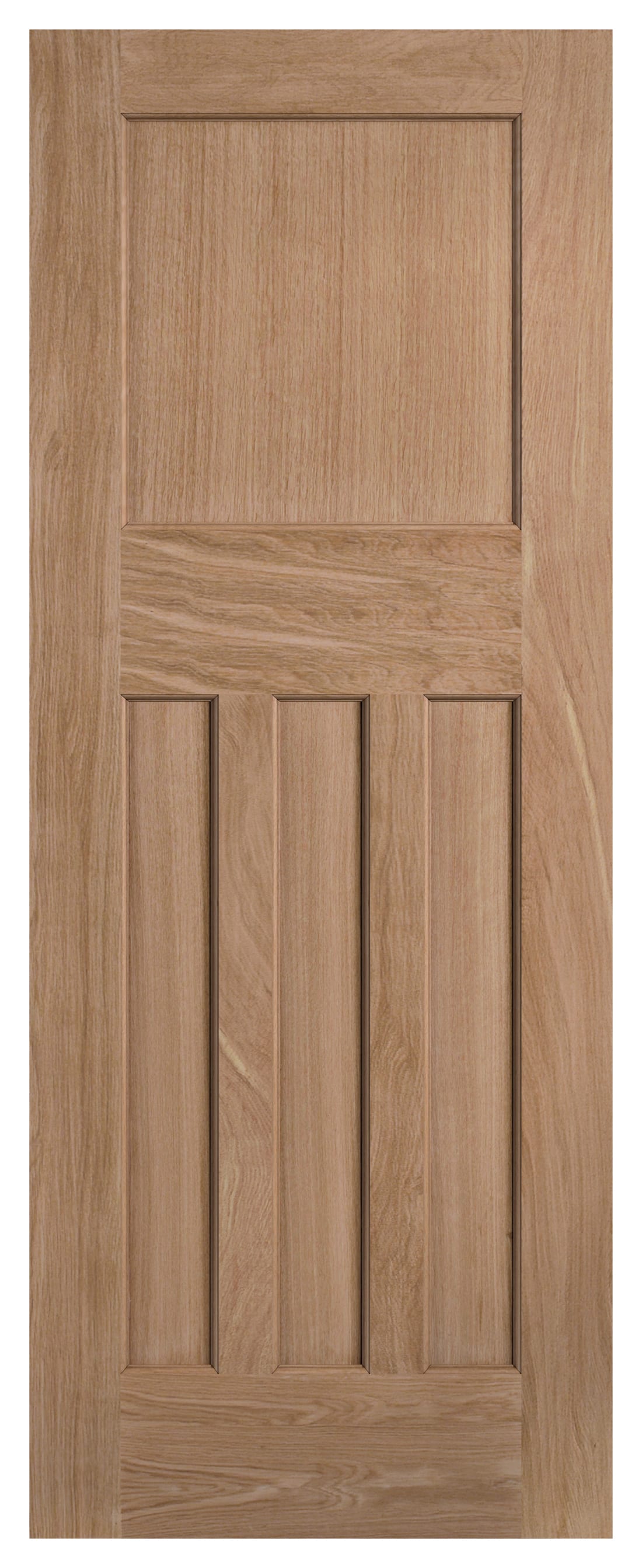 The LPD Internal DX 30s Un-Finished Oak Solid Core Door will add an authentic and luxurious touch to your home. Featuring features three inset rectangular panels below an inset square panel, it's crafted from un-finished oak and ready to be personalised at home to suit your decor. Built with a solid core, it's a durable option perfect for adding character and style to any home.