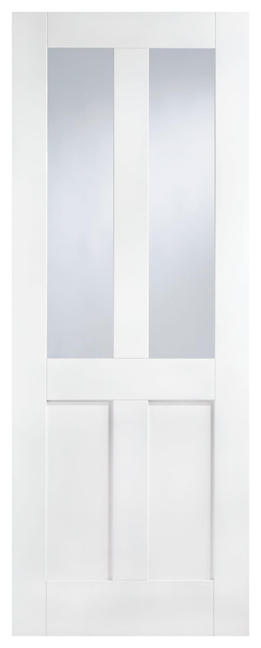 LPD Internal London 2 Lite Primed White Solid Core Door adds a clean, crisp touch to your home with this traditional London primed white internal glazed door. The sleek design features two clear glazed panels above two solid panels, finished in a contemporary white finish, which adds a modern vibe to the timeless design.