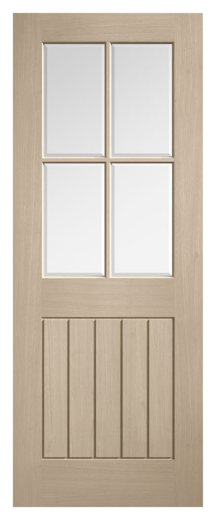 LPD Internal Mexicano Clear Bevelled Glazed Pre-Finished Blonde Oak Solid Core Door gives this cottage style door a contemporary twist. With a panel design and 4 clear bevelled glazed panels, this internal door will add a stylish and fresh look to you home.