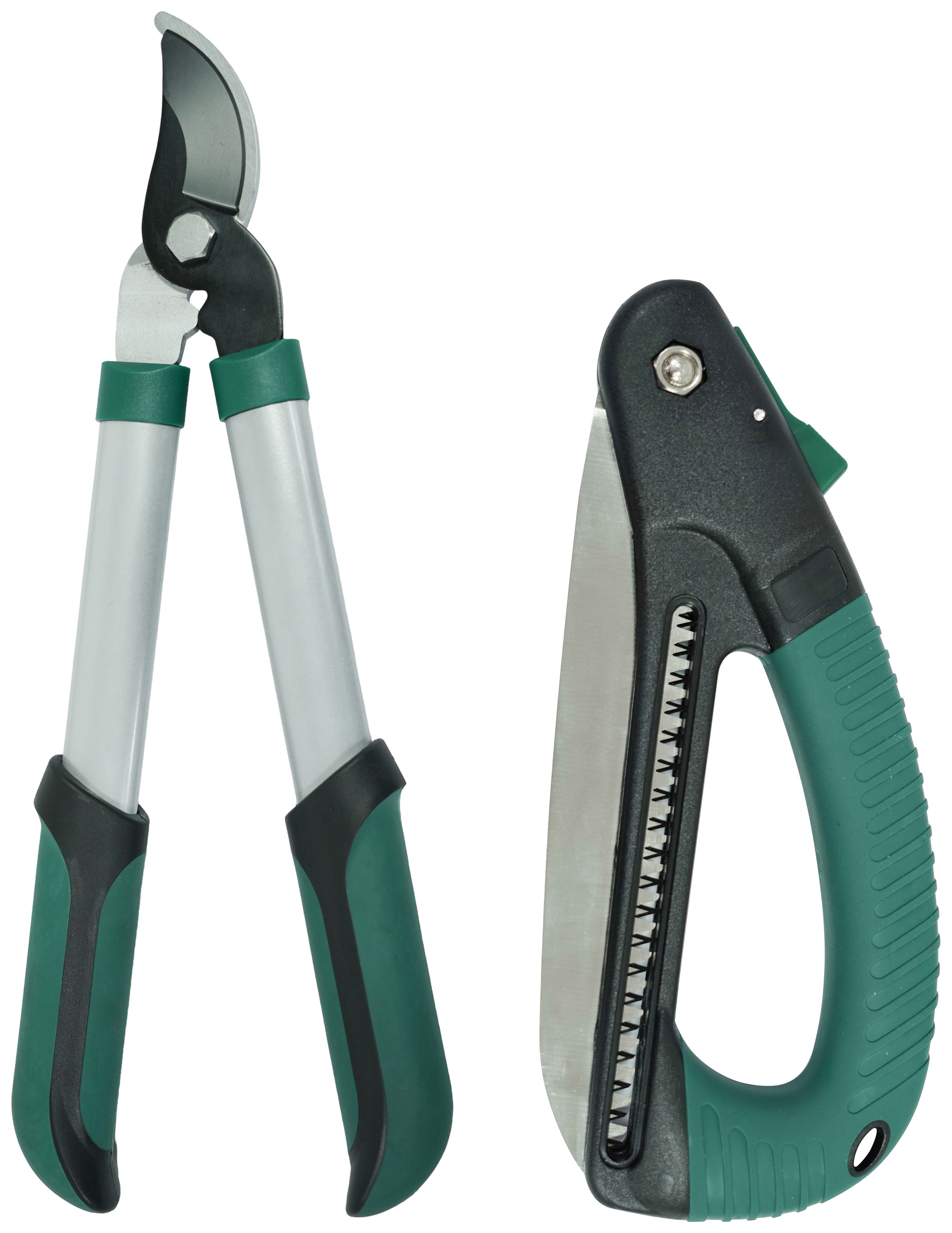 Lopper and Folding Saw Set is the perfect tool for a variety of gardening and yardwork tasks. The lopper features a bypass (scissor-like) cutting action, which is ideal for use on living and green stems, or branches. The folding saw is perfect for pruning trees, cutting firewood, and other woodworking projects.