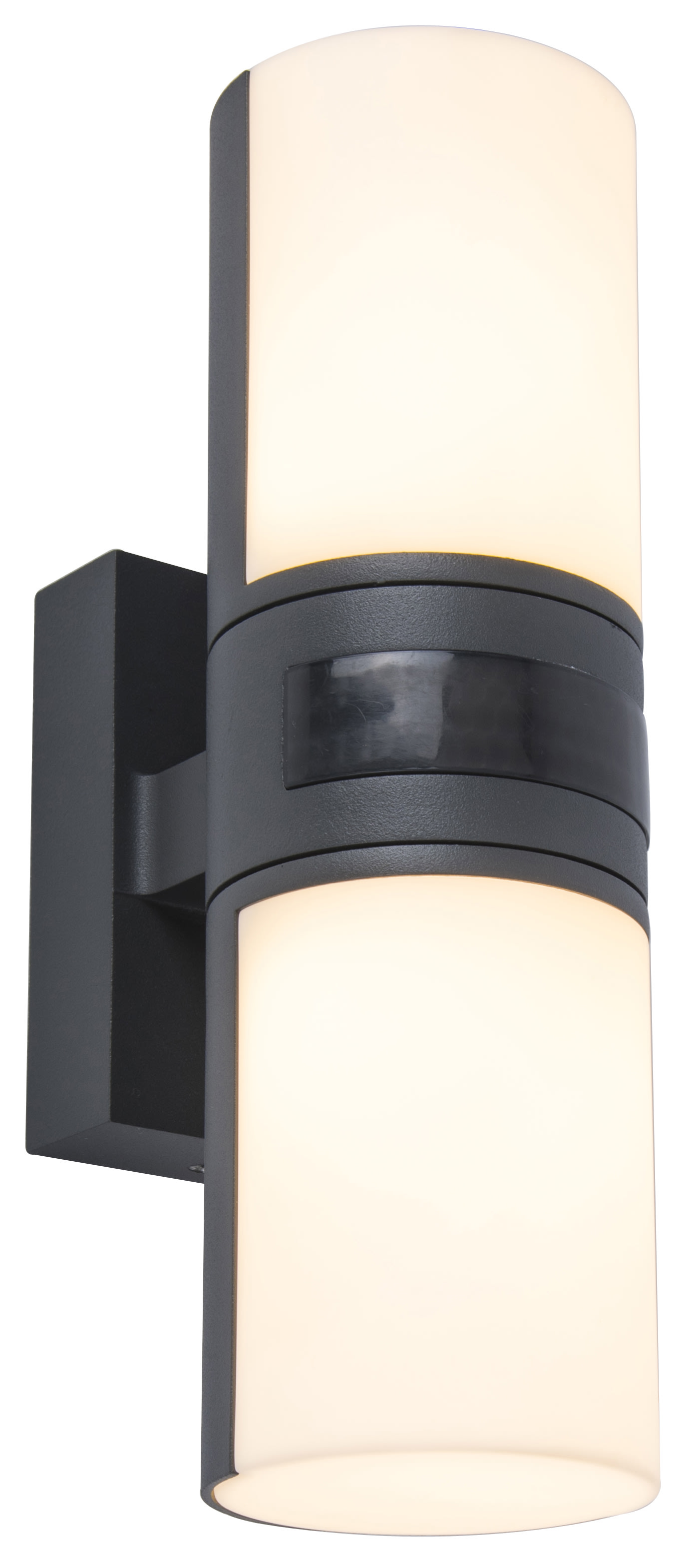 The Lutec Cyra Integrated LED PIR Wall Light is a modern style, twin head integrated LED wall light with built in PIR motion sensor. Each diffuser head can be rotated separately through 350° to allow you to customise the direction and look of the lighting effect provided by the 1000 lumen warm white LEDs (3000K). The integrated motion sensor will detect movement up to 17 metres and illuminate the light instantly. Featuring two adjustment dials to set the time of day and amount of time the light will illuminate for, the Cyra is perfect for lighting porches, patios and gardens. Made from high quality, heavy duty aluminium with tough opal polycarbonate diffusers, the Cyra is IP54 rated and covered by the Lutec 5 year warranty.