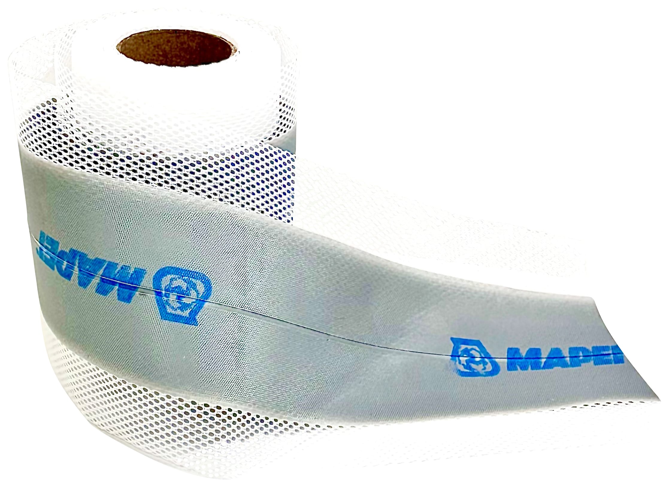 The Mapei Mapeband PE120 is a PVC tape designed to assist waterproofing interior wet areas, such as bathrooms and showers, when used with the waterproofing membrane Mapelastic Aquadefense (Product code: 114253). The Mapeband PE120 is used to waterproof the joints where the walls meet bath edges, shower tray, basins, and floors, making them impermeable to water and vapour. The band is also required to waterproof corners between adjacent walls and the joins between tile backer boards.