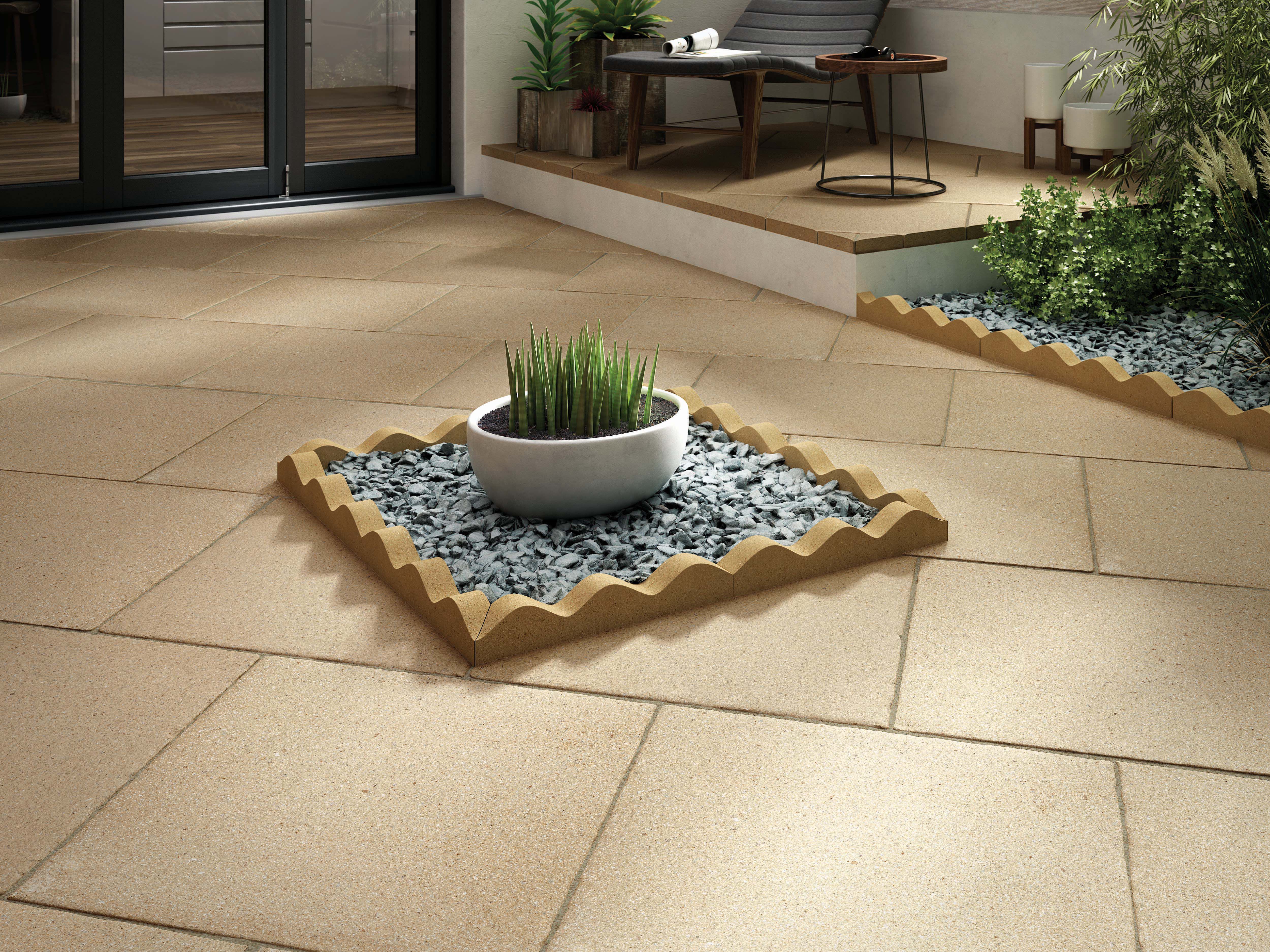 Saxon paving is a non-slip slab featuring real Yorkstone aggregates for a lightly textured, contemporary look. Saxon paving complements all types of gardens, large or small. These slabs are not recommended for decorative patios.