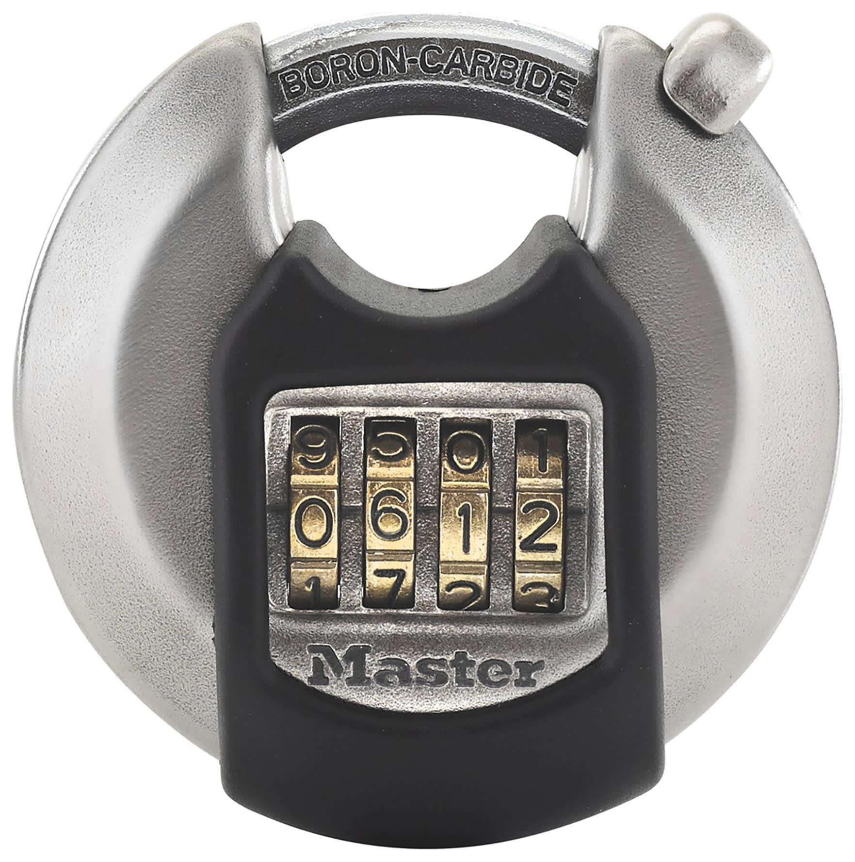 The Master Lock Excell Solid Body Padlock features a 70mm wide stainless steel body for strength, reliability and corrosion resistance. The 10mm diameter octagonal shackle is 16mm long and made of tough cut boron-carbide, 50% harder than hardened steel, offering maximum resistance to cutting and sawing. The reinforced body bumper protects against scratches. The lock includes a set-your-own combination convenience, with the need of the included reset tool. This padlock is perfect for self storage units, sheds, trailers, moving trucks, vans and more. The limited lifetime warranty provides peace of mind from a brand you can trust.