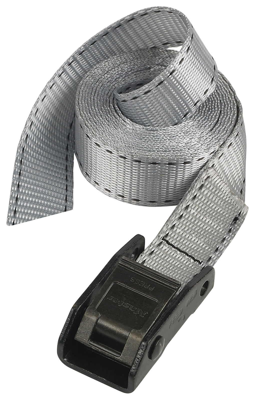 The Master Lock Lashing Strap features a 5m long and 25mm wide endless strap with zamac buckle. Reinforced buckle to reach a lashing capacity of 150kg. Zamac buckle with multiple teeth for an easy and safe use, ideal to secure luggage, furniture, mattresses, sports gear and more. The strap is certified GS Mark.