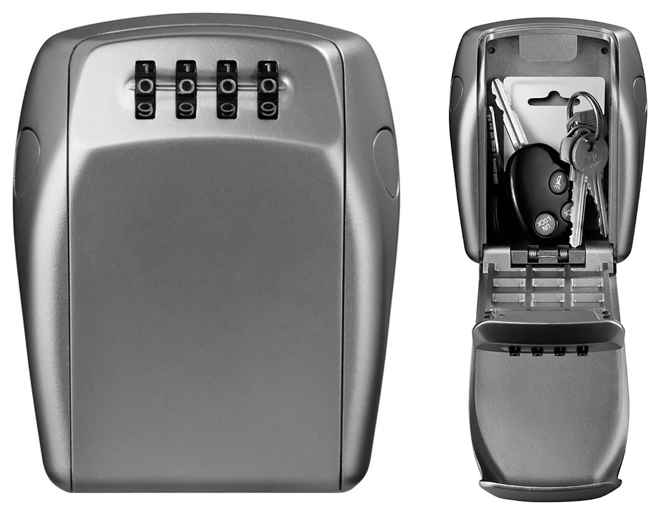 The Master Lock reinforced security select access key lock box features a 105mm wide metal body for durability and accepts multiple house keys and access cards. Stop hiding your keys under the doormat or under a flower pot. Select access is the perfect solution to share access to your keys. The wall mount design offers permanent installation. Set-your-own 4-digit combination for keyless convenience and increased security. The protective cover protects combination dials from weather, dirt and grime. The limited lifetime warranty provides peace of mind from a brand you can trust. A great key safe for families with children who may need to enter the house when an adult isn't present. Can be mounted anywhere and the mounting kit is included in the package for ease of use.