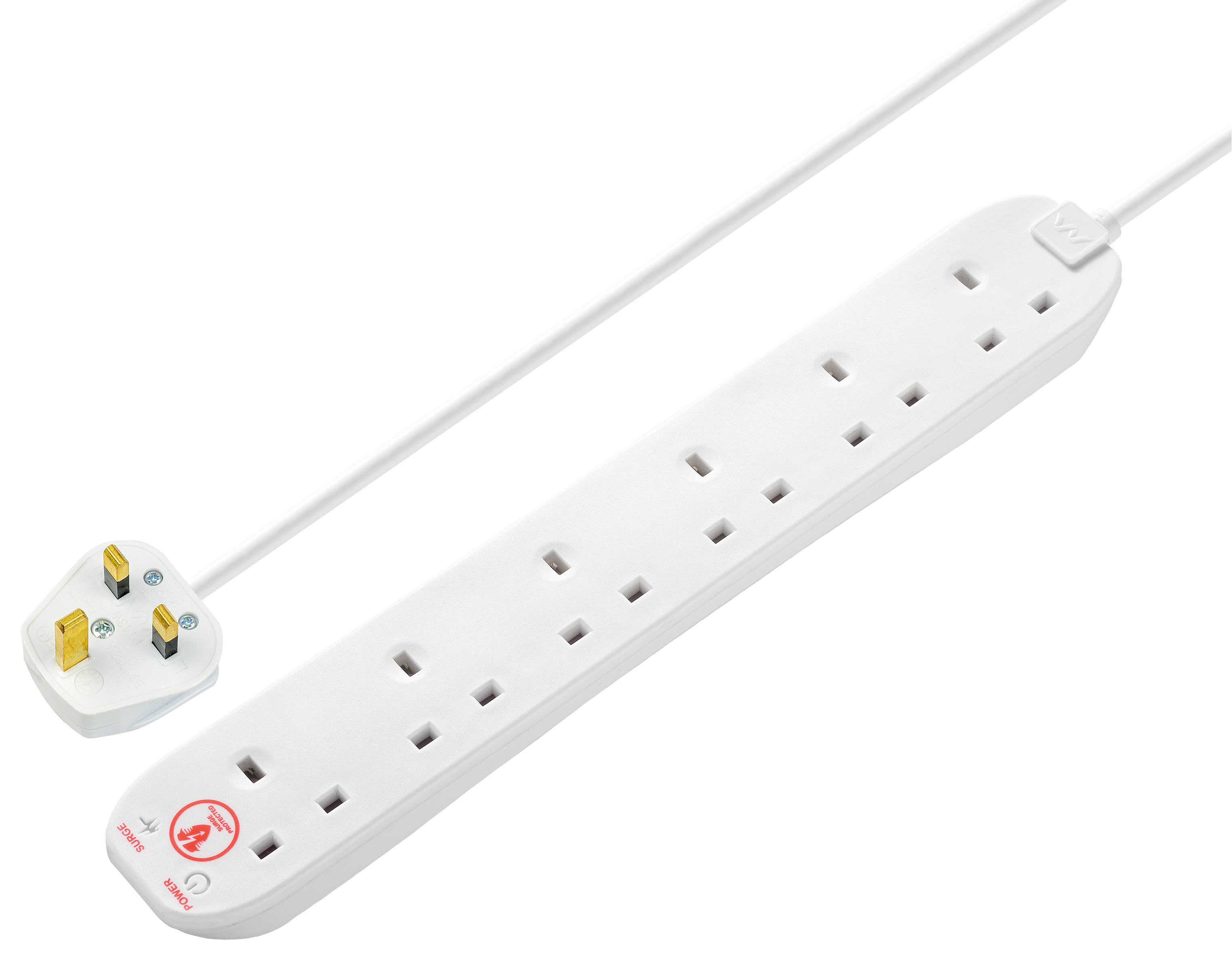 Masterplug 13A 6 Socket White Extension Lead with Surge Protection - 2m